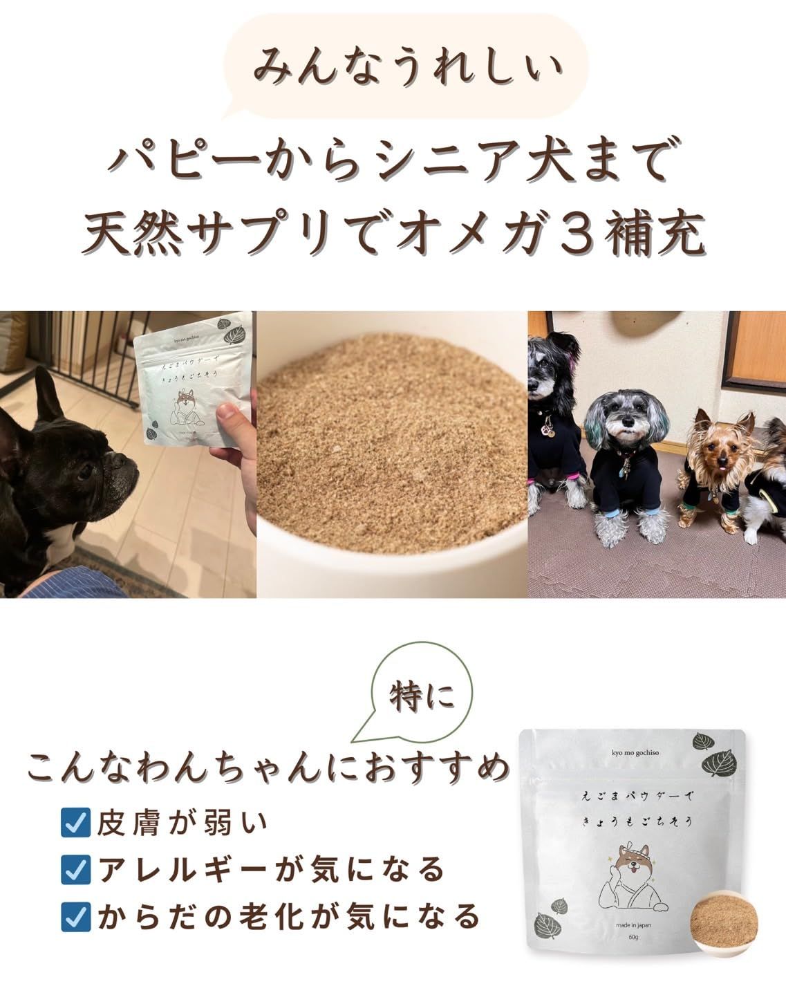 犬 ふりかけ 無添加 国産 えごまパウダー 犬 omega 3 オメガ3 αリノレン酸 荏胡麻 えごま油 アレルギー 皮膚ケア 涙やけ 犬 トッピング 60g