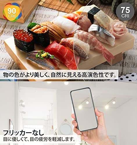 【E26 LED電球付き】一般電球タイプ:9W(60W形相当)、全光束:800lm、昼白色 5000k、高演色:Ra 90、広配光タイプ;CRI 90の高演色性 LED電球で、物の本来の色をを綺麗に再現できます。