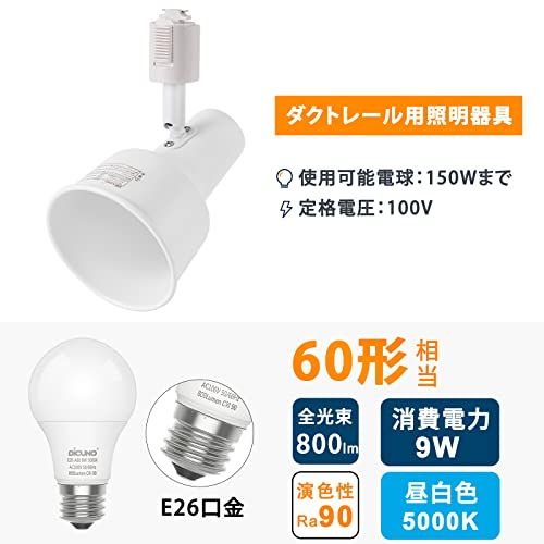【ダクトレール用照明器具】定格電圧:100V、使用可能電球:150Wまで、カラー:ホワイト;角度調節可能:上下約90度、回転約360度回転可能なので、お好みのところに光を当てられることができます。