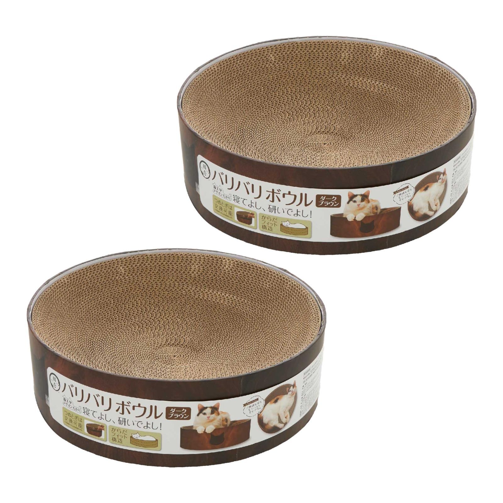 猫壱 爪とぎ バリバリボウル 猫柄 ダークブラウン レギュラー 2個セット