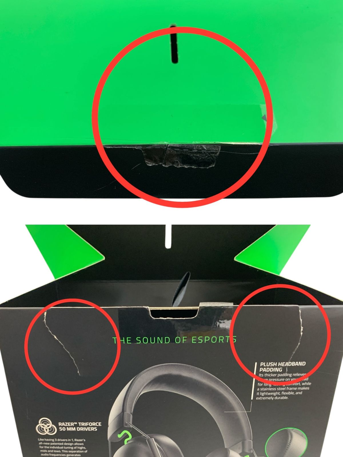 箱の開け口(写真10枚目参照)にテープが貼られてあり、破れた跡がございます。(詳細は画像をご確認ください。)