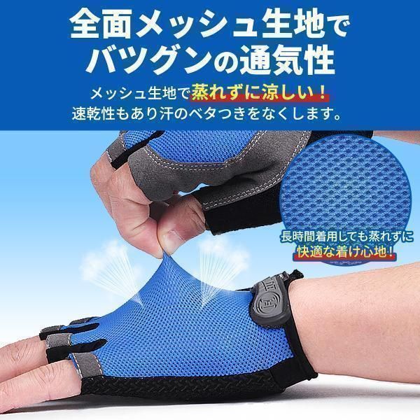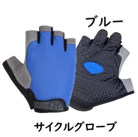 ブルー M サイクルグローブ サイクリング 手袋 指切り 自転車 ロードバイク
