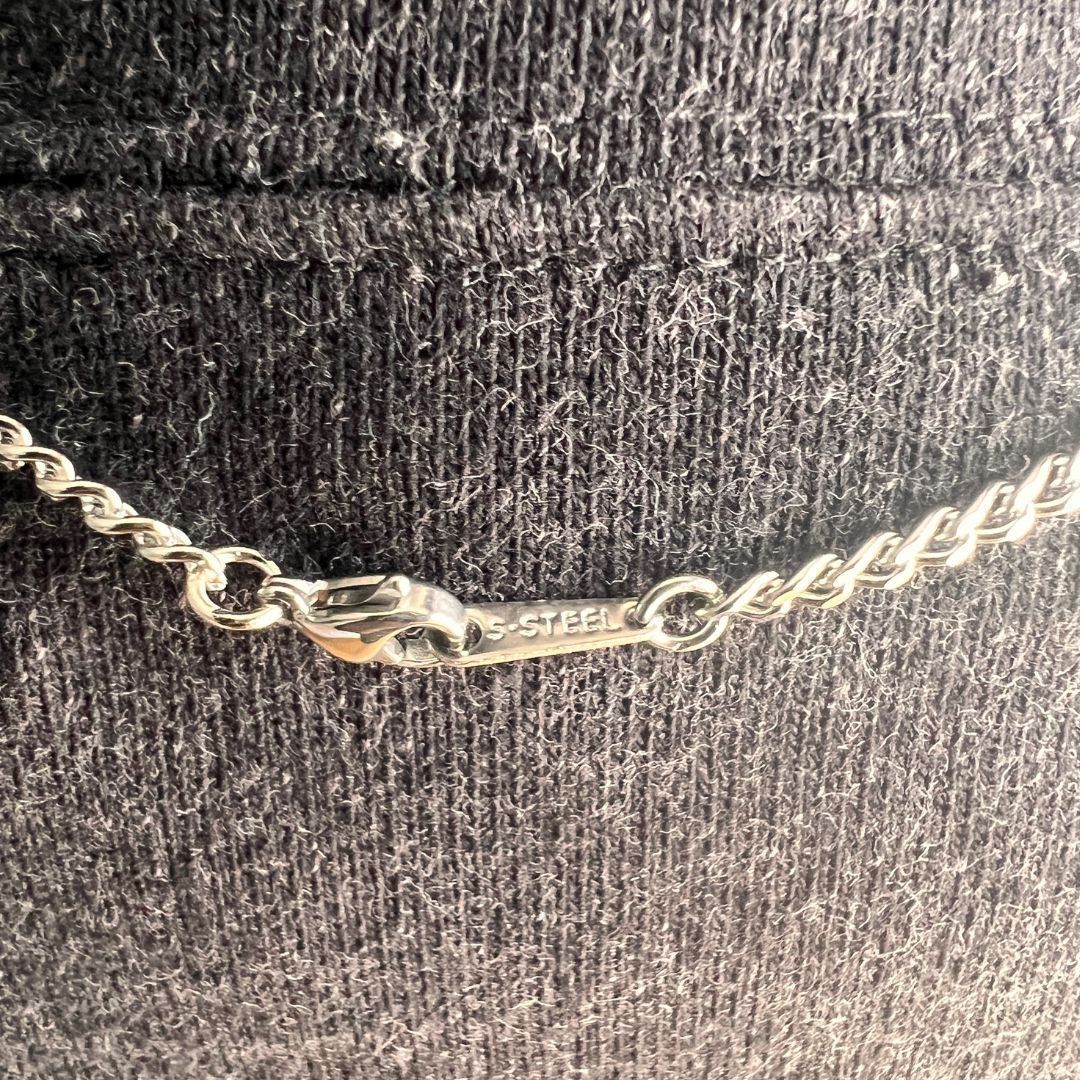 材質は全てステンレス製です。留め具に「S・STEEL(ステンレススティール)」の刻印がございます。