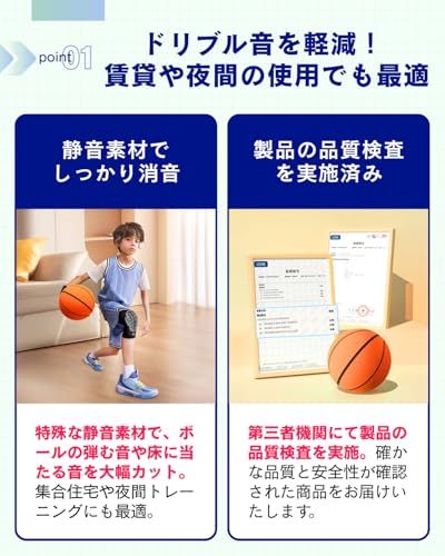 【自宅でも本格プレイ!静音設計のバスケットボール】静音 バスケットボール は、音が気になる室内環境でも使える特別なバスケットボール。クッション性と静音性を兼ね備えた設計で、自宅のリビングや室内練習に最適。バスケットボール 小学生から大人まで、自宅で気兼ねなくドリブル練習が可能になります。