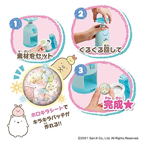 素材をセットしてハンドルを回すだけで、キラキラのすみっコぐらしバッチがカンタンに作れます。