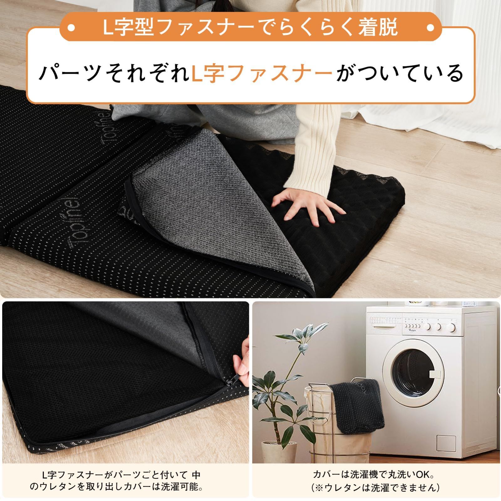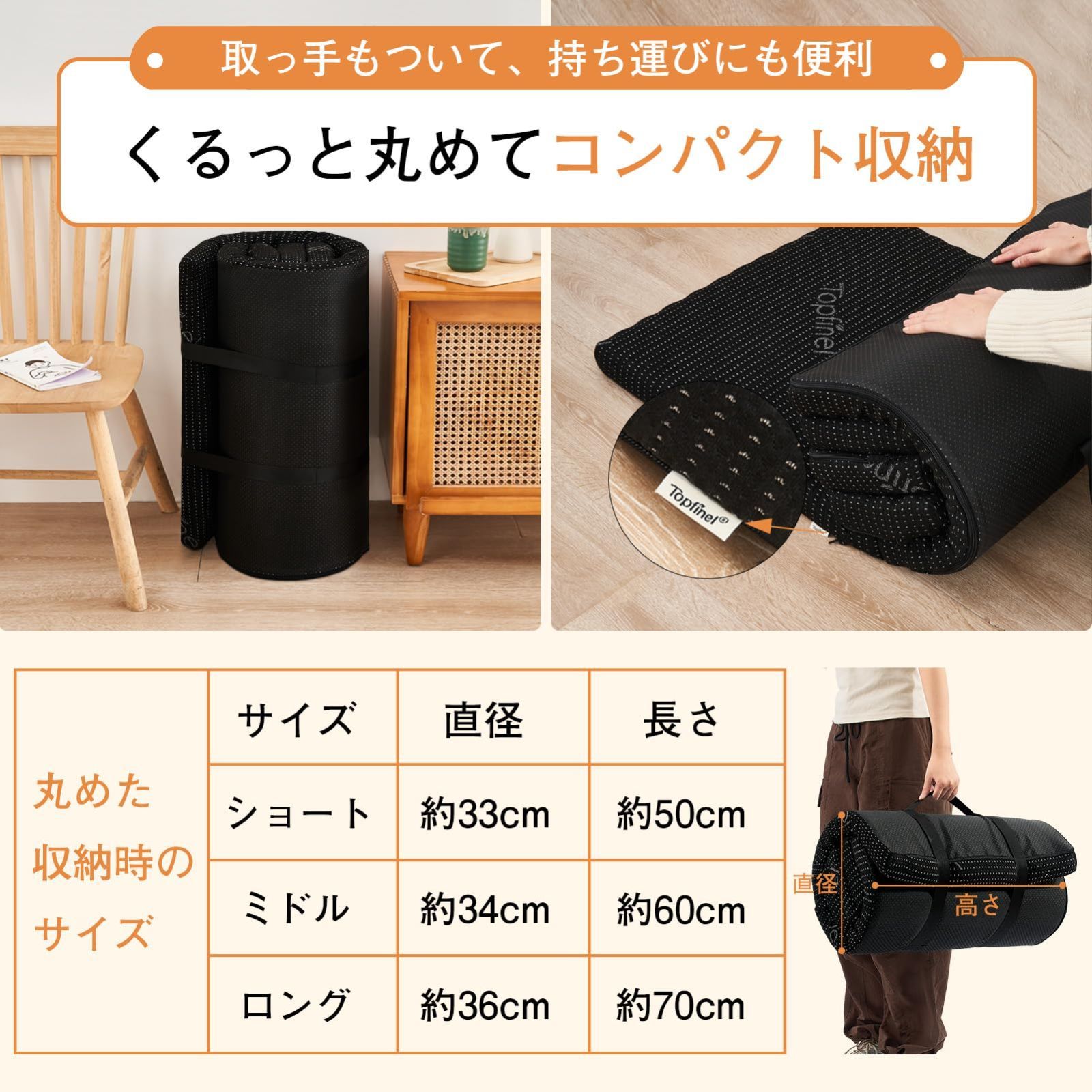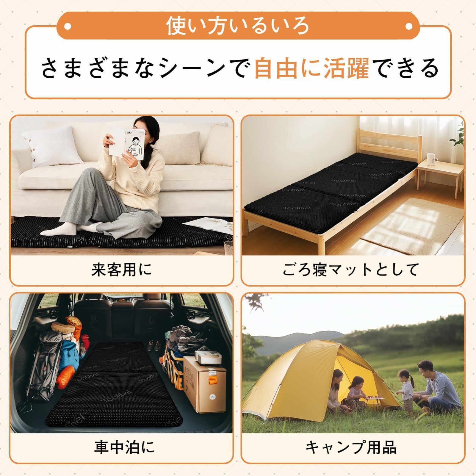 Topfinel マットレス ごろ寝マット シングル 高反発 折りたたみ 密度28D 厚さ5cm 150cm 車中泊 防災グッズ マットレス 長座布団 コンパクト カバー洗える 丸めて収納 50 x 150cm ブラック