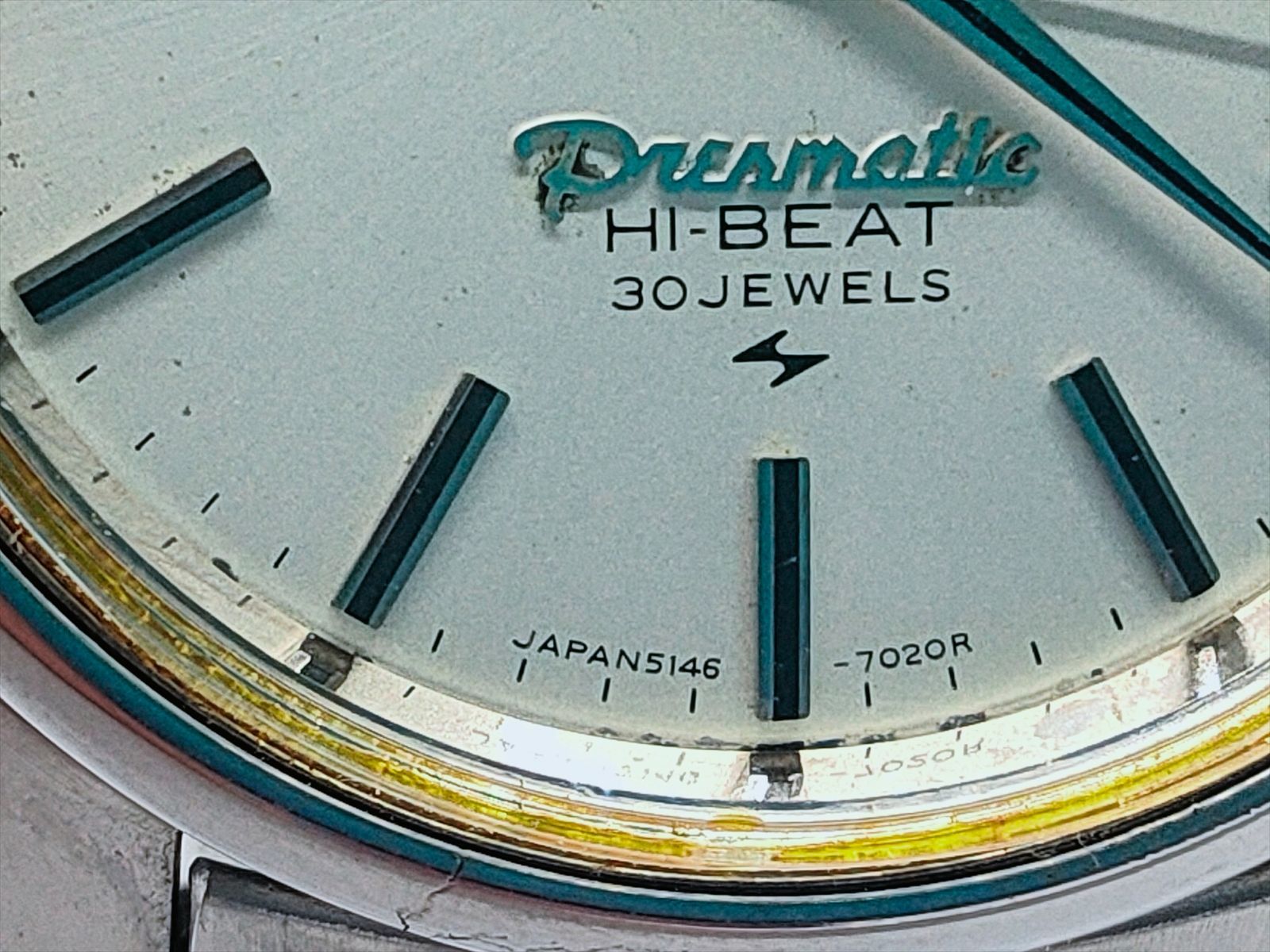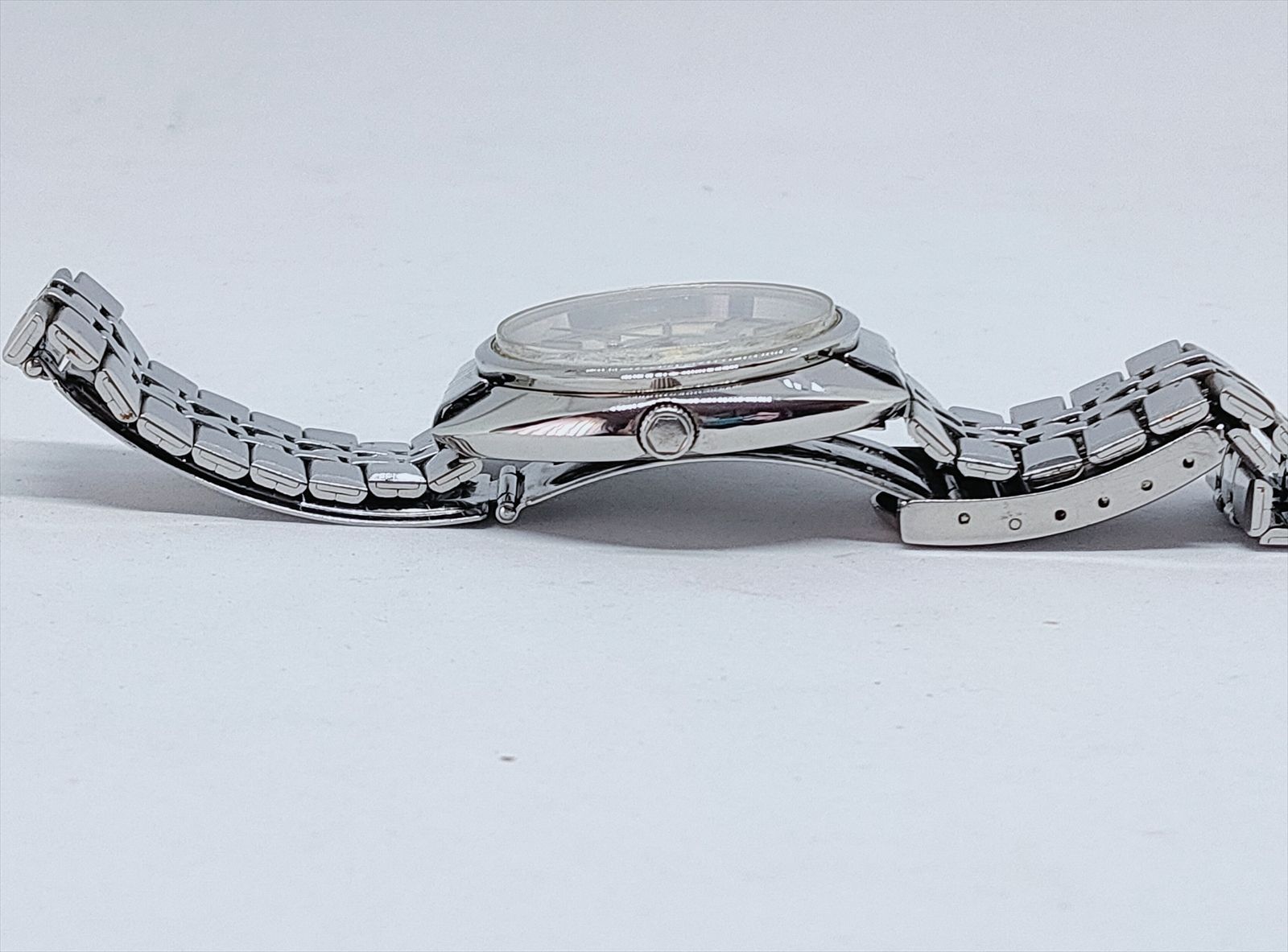 文字盤の経年変化やベルトに小さな汚れが見られますが、50年ものとは思えないほどです。