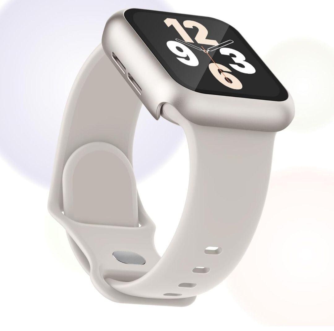 「良い着け心地のバンド」このApple Watch用のバンドはソフトなシリコン素材を使用しており、軽くて柔らかくて快適に肌になじみます。バンド表面には多数の通気孔を設計されて、軽量化と通気性の向上に役立ちます。汗や水をはじく性能持ちシリコン素材で、運動するときの使い心地が良いです。
