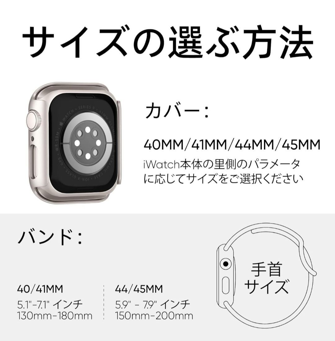 「対応機種&サイズ」当Knossen アップルウォッチ向けのバンド+ケースの一体型セットは、Series 11 10の42mm機種だけに対応します。iWatch本体の里側のパラメータに応じてサイズをご選択ください。手首サイズは135-180mmの方に適します。バンドの表面に数個の調整穴があり、長さが自由に調整可能です。