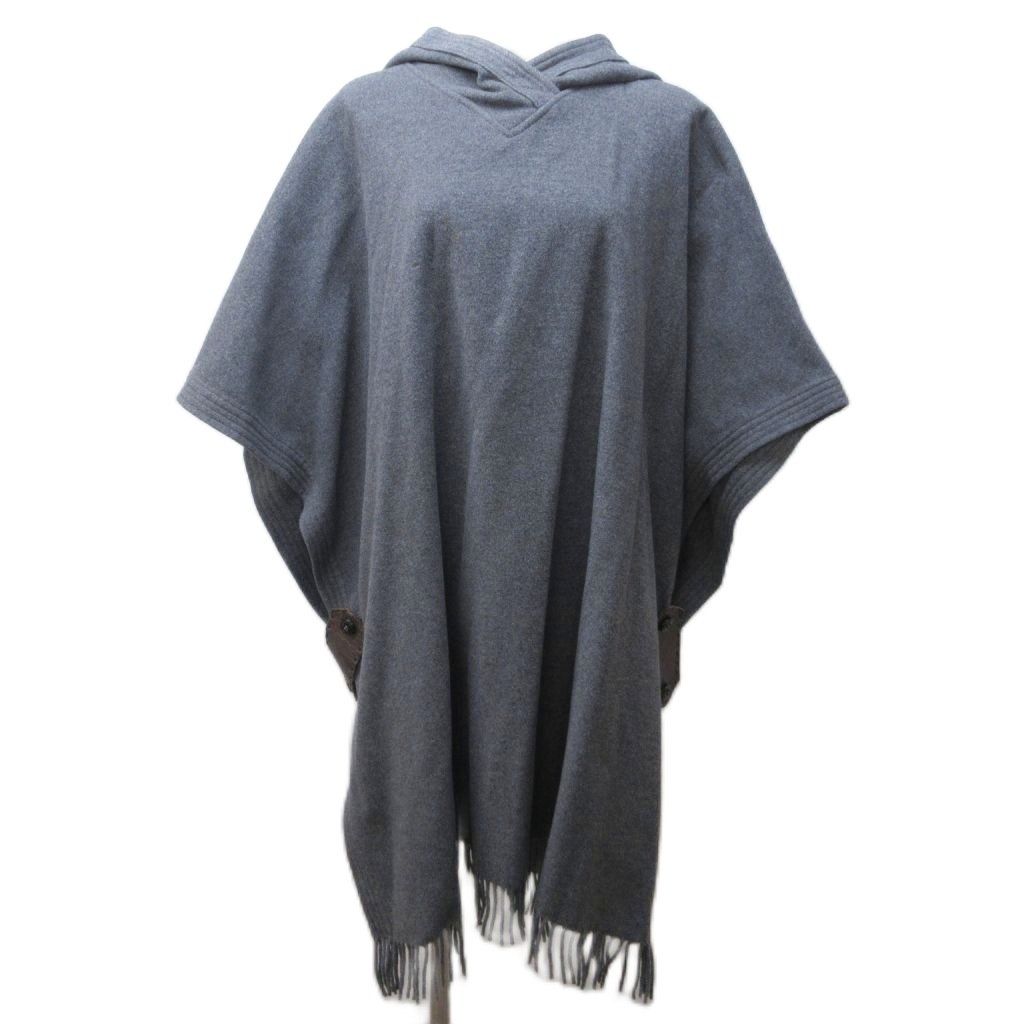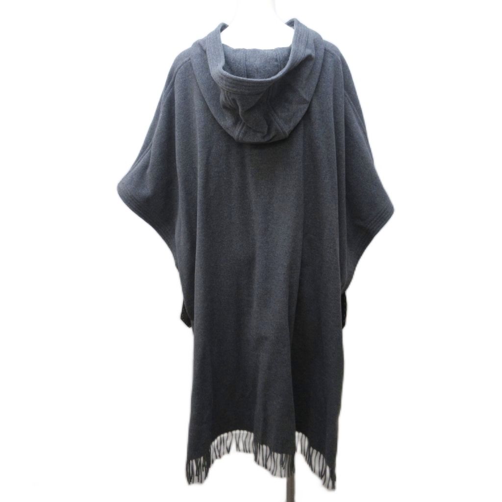 【商品名】リュージョー LIU JO ポンチョ ウール フリンジ フード ロング 灰 グレー 1216