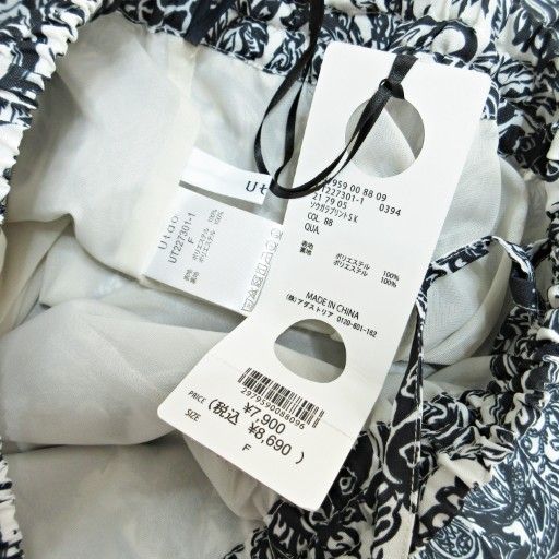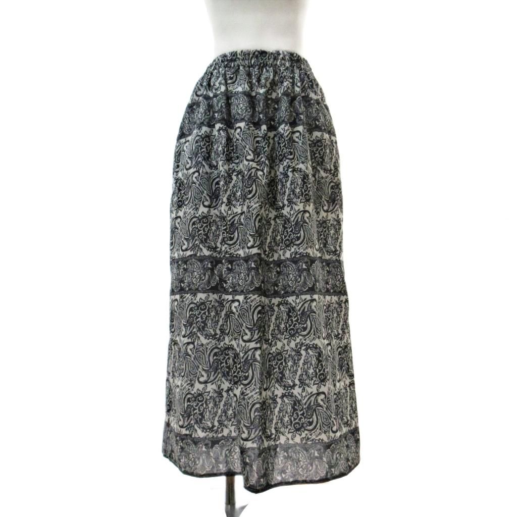 【商品名】UTAO タグ付き ロング ギャザー スカート イージーウエスト 総柄 ペイズリー柄 F 白 黒 1217