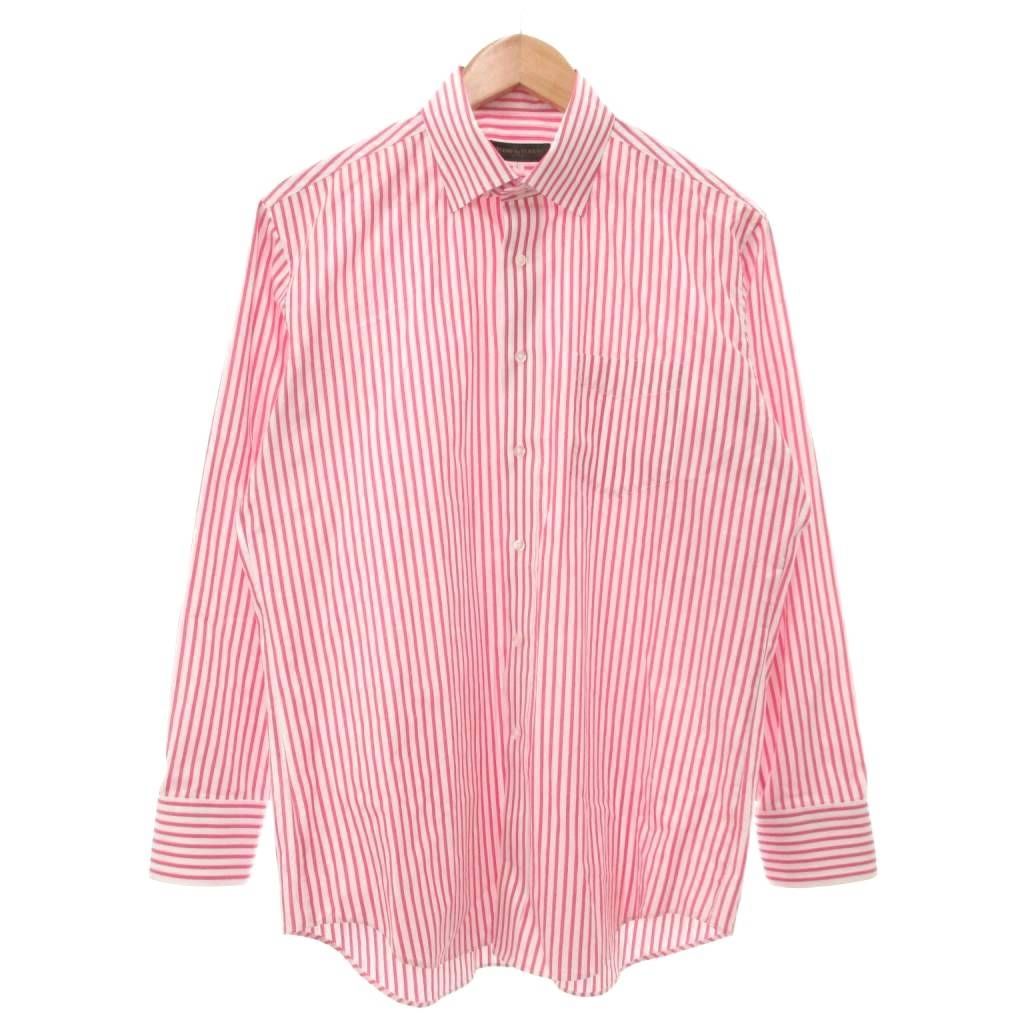 【商品名】ダーバン DURBAN 美品 ストライプシャツ 長袖 L ピンク 白 ホワイト /YJ ■YHS12