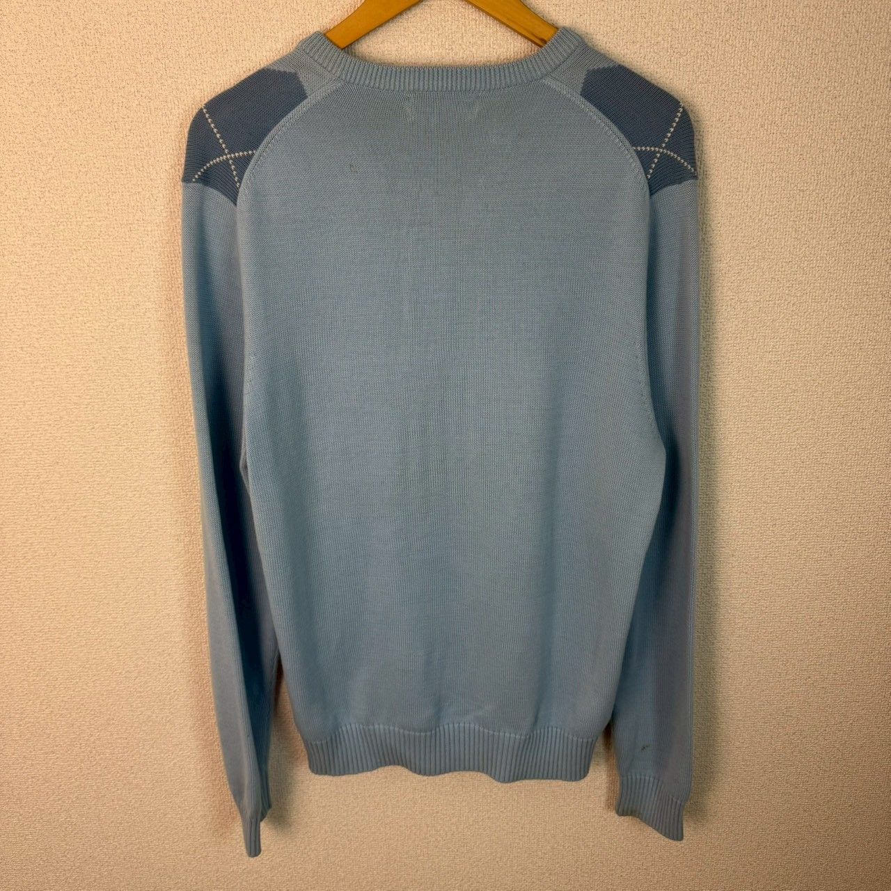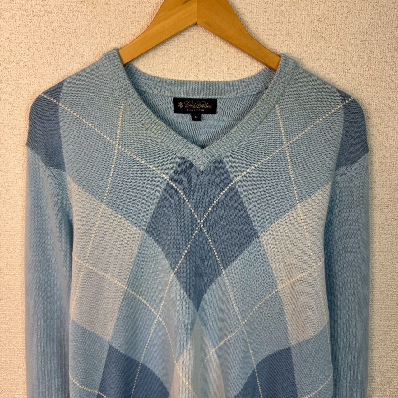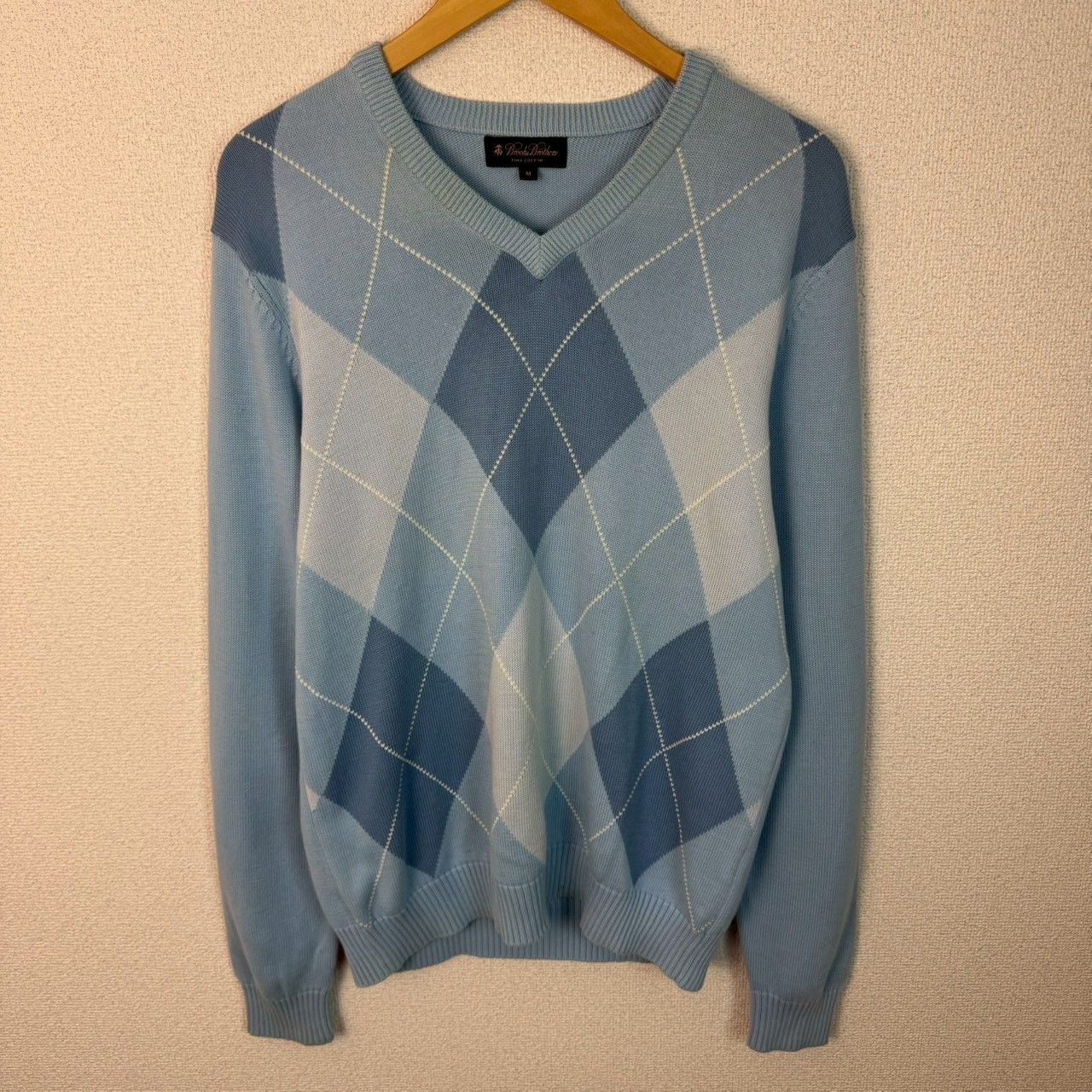 Brooks Brothers ブルックスブラザーズ コットンニット アーガイル柄 ブルー Mサイズ メンズ 古着 アメカジ クラシック セーター Vネック PIMA COTTON ピマコットン 総柄 水色 シティーボーイ シンプル カジュアル 春服 秋服 冬服