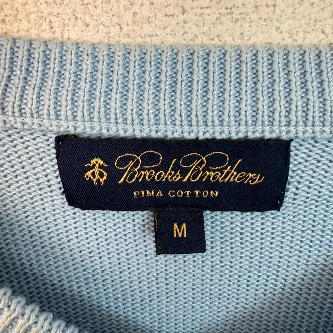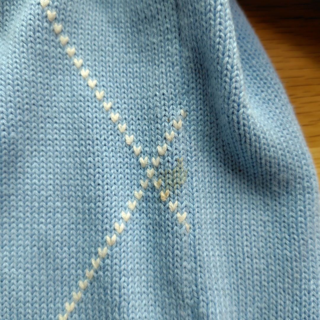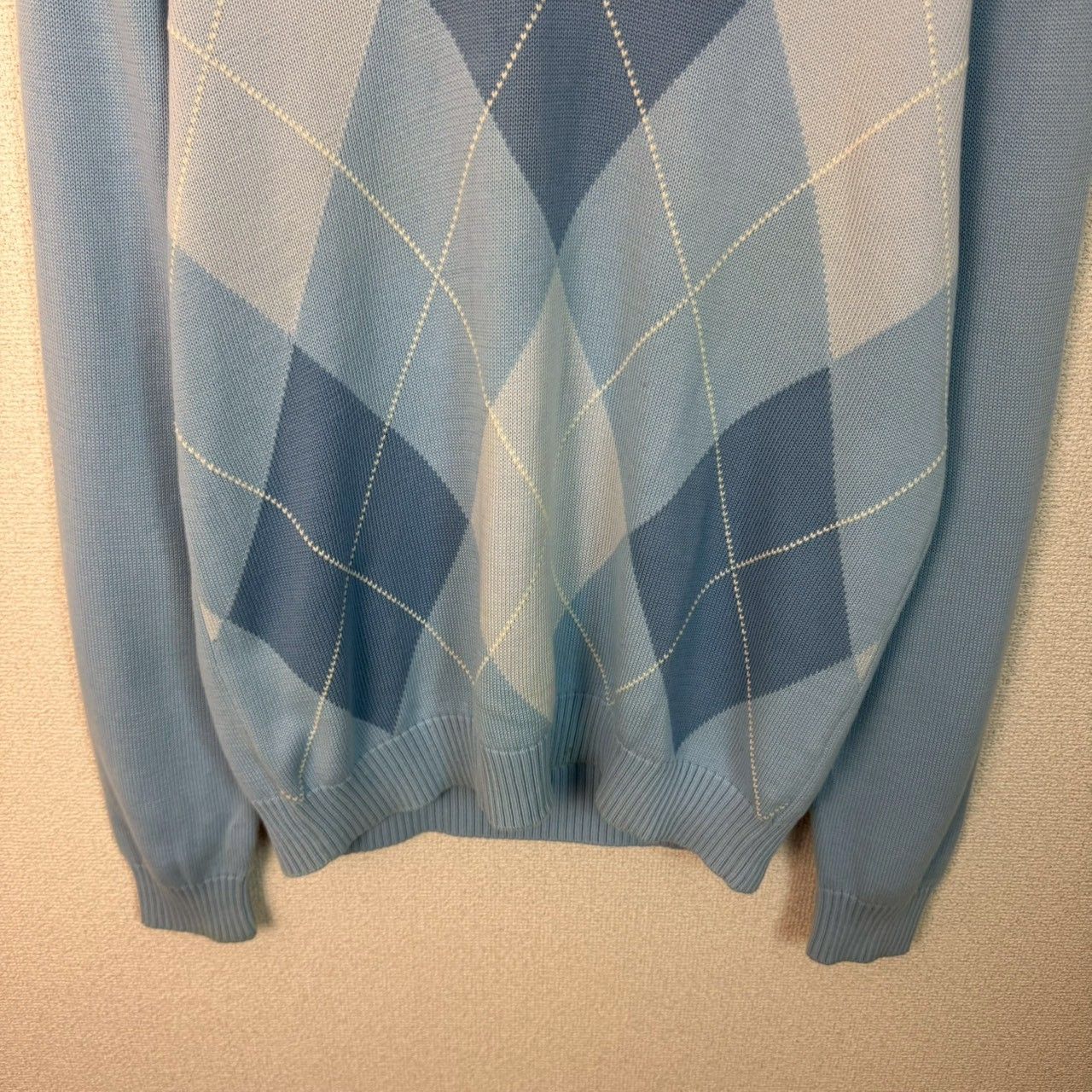 Brooks Brothers ブルックスブラザーズ コットンニット アーガイル柄 ブルー Mサイズ メンズ 古着 アメカジ クラシック セーター Vネック PIMA COTTON ピマコットン 総柄 水色 シティーボーイ シンプル カジュアル 春服 秋服 冬服