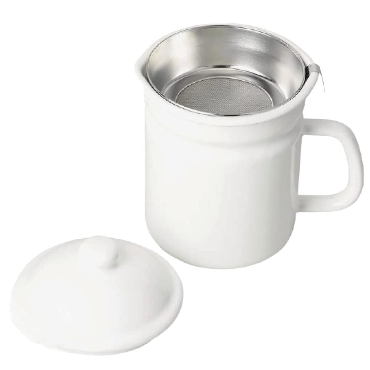 オイルポット ホーロー 1.1L ホワイト 油こし器 漉し網 付き ホワイトカラーで清潔感のあるお洒落なホーロー製オイルポット 内側も白いので漉した油の色も分かりやすく使いやすい 油 保存 容器 琺瑯製 油 ポット