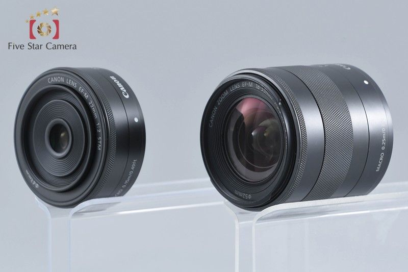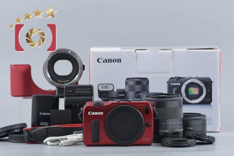 レンズ x2・前後キャップ x3・ストラップ・ボディキャップ・バッテリー・充電器(社外品)・USBケーブル・90EX フラッシュ・ボディケース・EF-EOS M マウントアダプター・元箱(劣化有り)