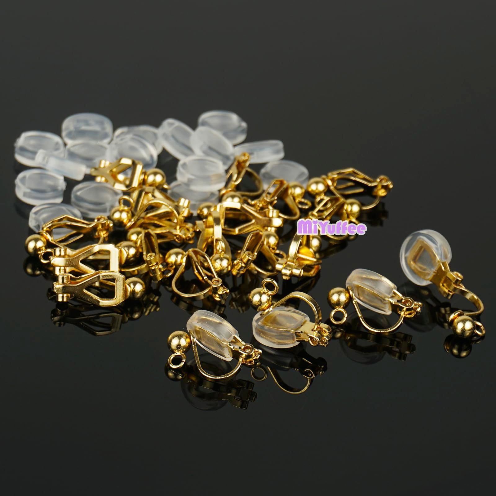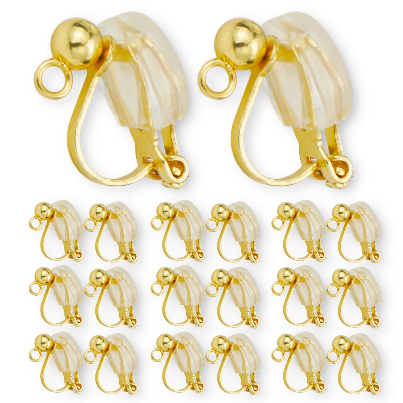 イヤリング パーツ 丸玉 クリップ式 カン付き シリコン カバー 付き 金具 アクセサリーパーツ 10ペア20個 (ゴールド)