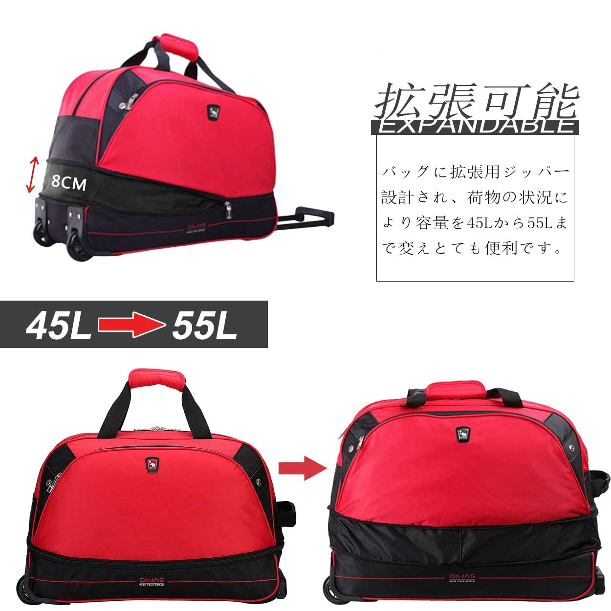 ◆「容量拡張可デザイン」OIWASトラベルバッグ容量は45Lです。容量拡張デザインに加え、バッグ底部拡張ジッパーを開くとボストンキャリーバッグを厚さ8cmまで拡張することができ、容量が55Lに至ます。また、伸縮性があるドローバーで、自分の好みによって、キャリーの長さをスムーズに調節できます。高級な膠質素材と鋼製構造ローラーディザインで2輪キャスターは消音の設計があります。凸凹な路面でもスムーズで安定した移動を可能にします。