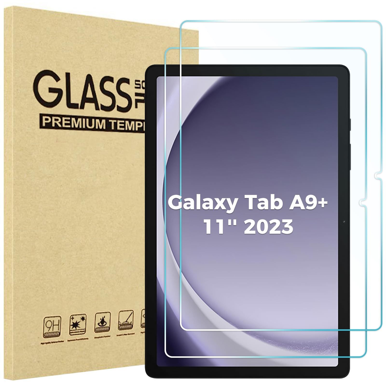 ProCase [2枚セット] Galaxy Tab A9 Plus 2023 11インチ 液晶保護 強化ガラス スクリーンプロテクター 適用機種: Galaxy Tab A9+ 2023 (SM-X210/X216/X218)