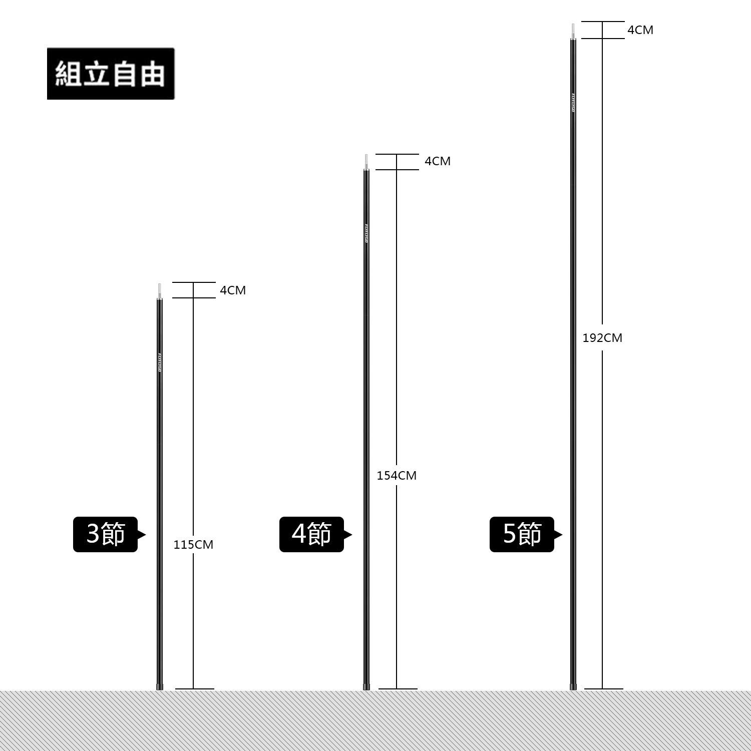ポールとポールの間に連結金具があり、差し込めば簡単に接続出来ます。説明書など要らずに誰でも簡単に使えます。分割式のポールは状況に合わせて適度な高さを調整して、様々なところで利用できます。