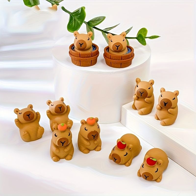 色んな格好をしたカピバラの置物オブジェ10個セットは、あなたのインテリアに可愛らしいアクセントを加えてくれるアイテムです!このセットには、ユニークなデザインのカピバラがランダムに含まれており、屋内や屋外を問わず、リビングやダイニング、さらには庭や玄関の装飾に最適です。ガーデニングの楽しさを引き立てるだけでなく、友人へのギフトにもぴったりな可愛らしさが魅力です。