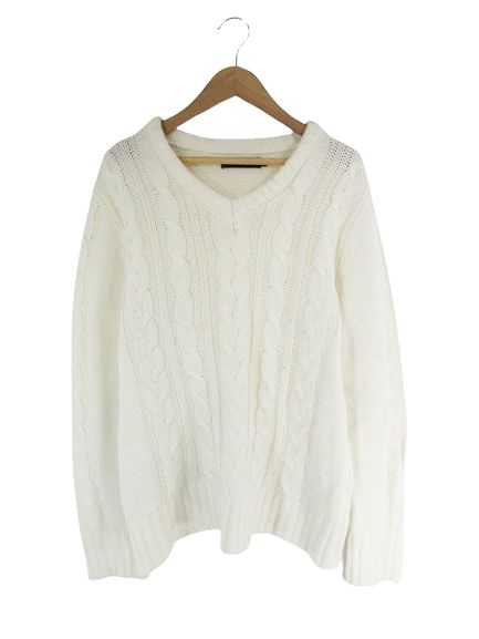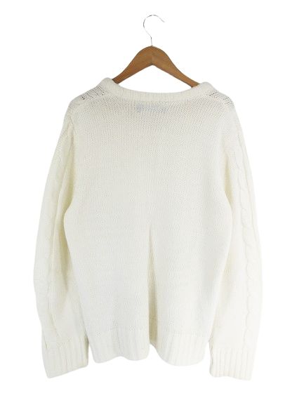 【商品名】ロシェル roshell プルオーバー ニット セーター Vネック 長袖 チェーン編 無地 ホワイト サイズM QQQ
