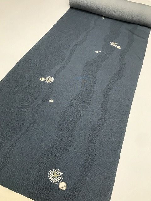 【中古】反物 正絹 ブルーグレー地に丸紋模様 小紋着尺