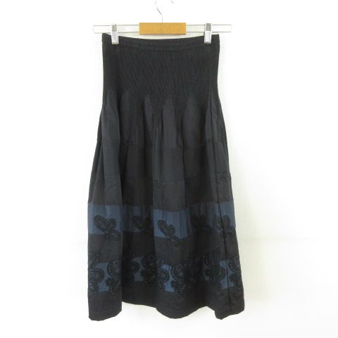 【商品名】トラフィックベーシックスタイル TRAFFIC BASIC STYLE スカート ミディ丈 フレア 刺繍 黒 38-42 *T254