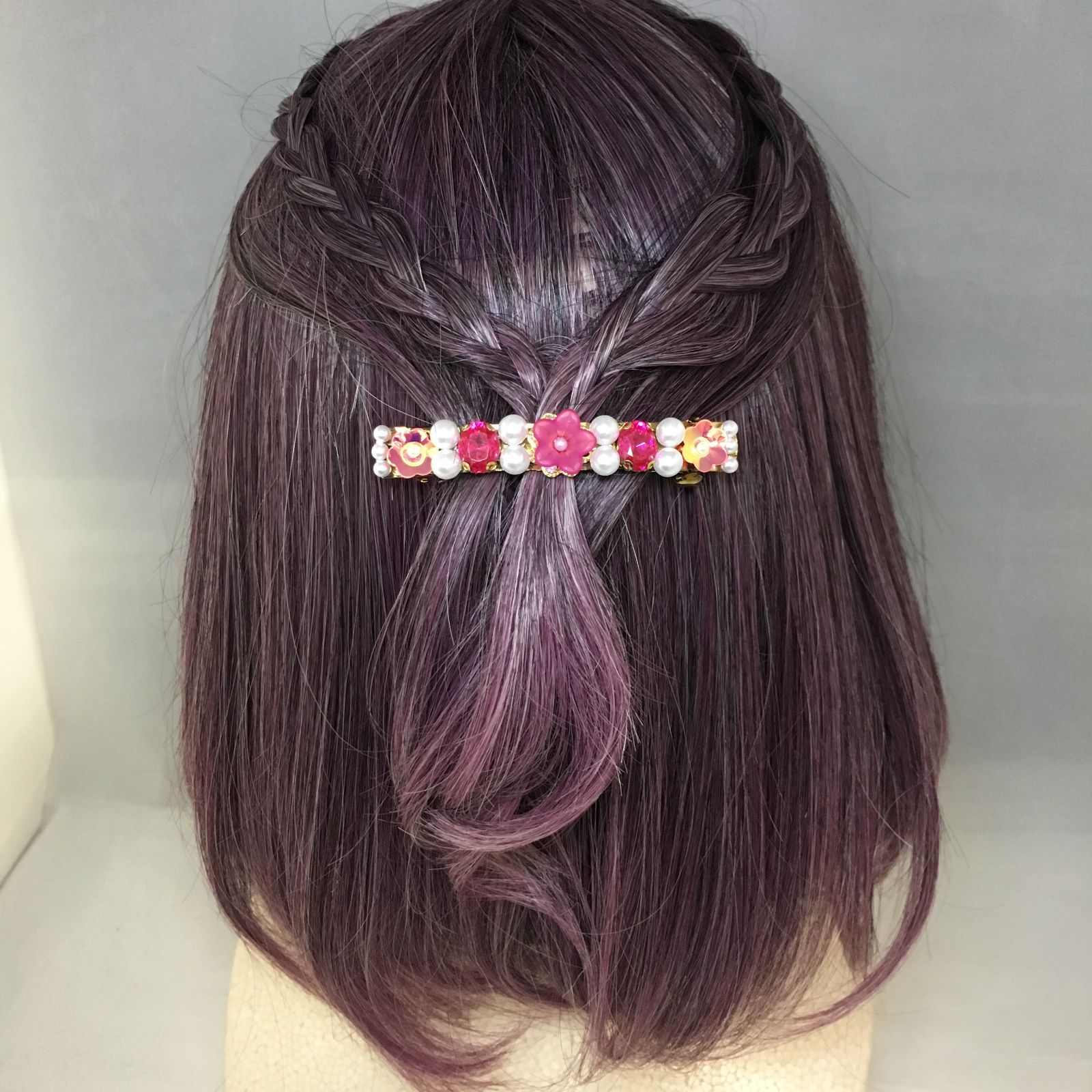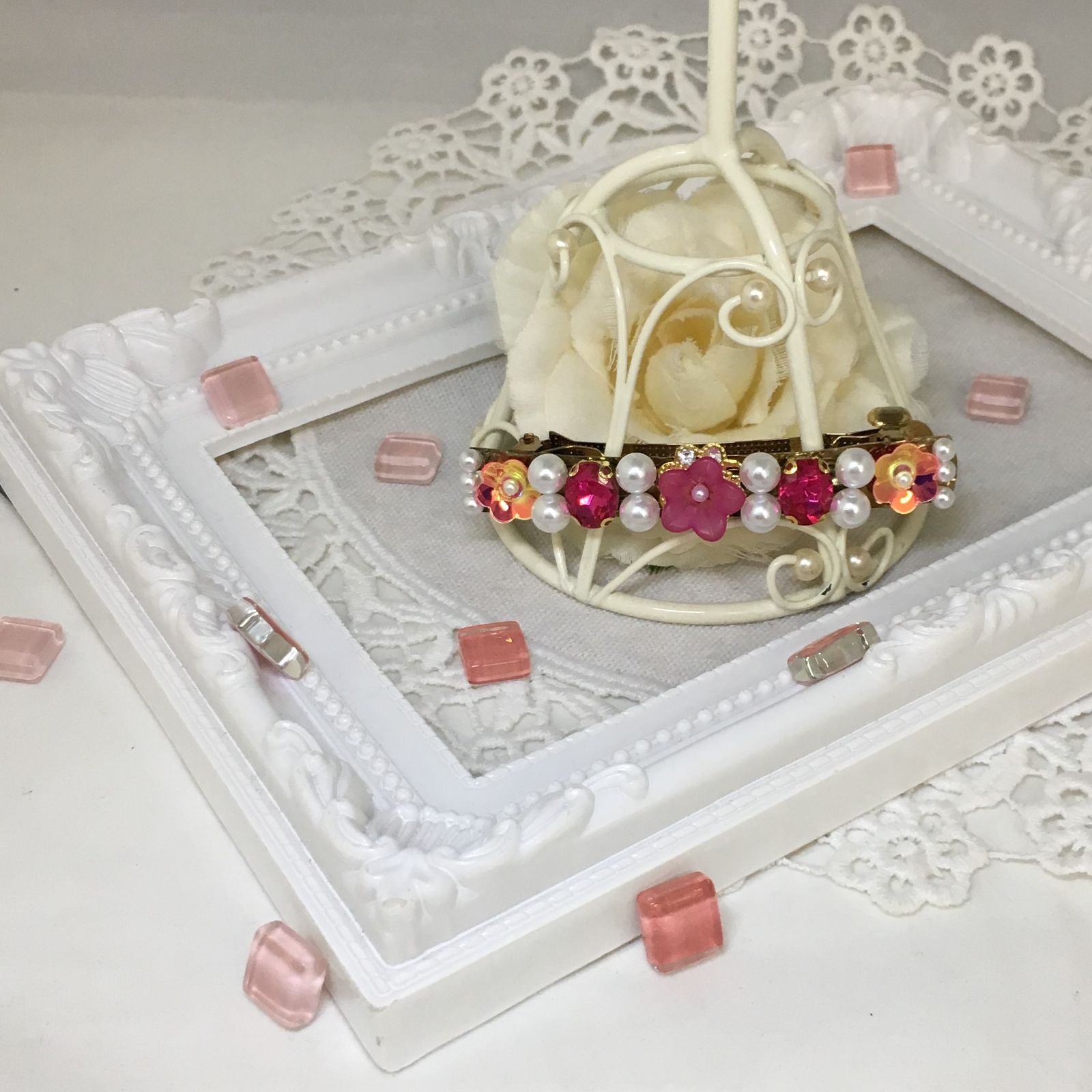 素材 :すかしパーツ、パール、フラワービーズ、ビジュー、スパンコール、チャトン、バレッタ