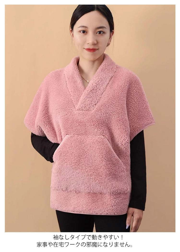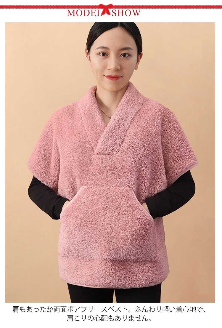 肩もあったか両面ボアフリースベスト。ふんわり軽い着心地で、肩こりの心配もありません。