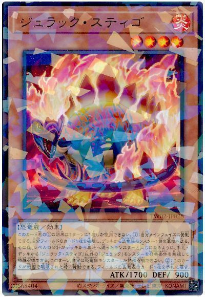 その後、レベルの合計がデッキから墓地へ送ったモンスターと同じになるように、手札・デッキから「ジュラック・スティゴ」以外の「ジュラック」モンスターを召喚条件を無視して特殊召喚できる。