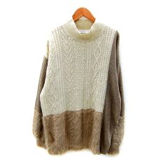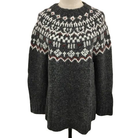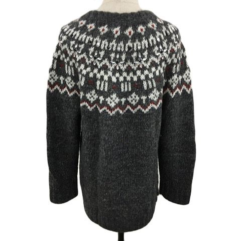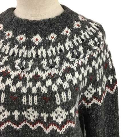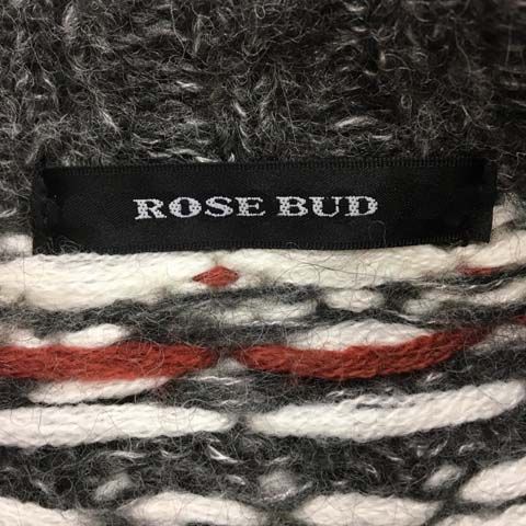 【商品名】ローズバッド ROSE BUD セーター ニット ラウンドネック プルオーバー ビジュー 総柄 長袖 F グレー 白 ホワイト