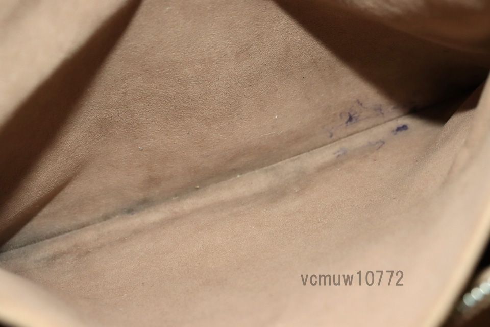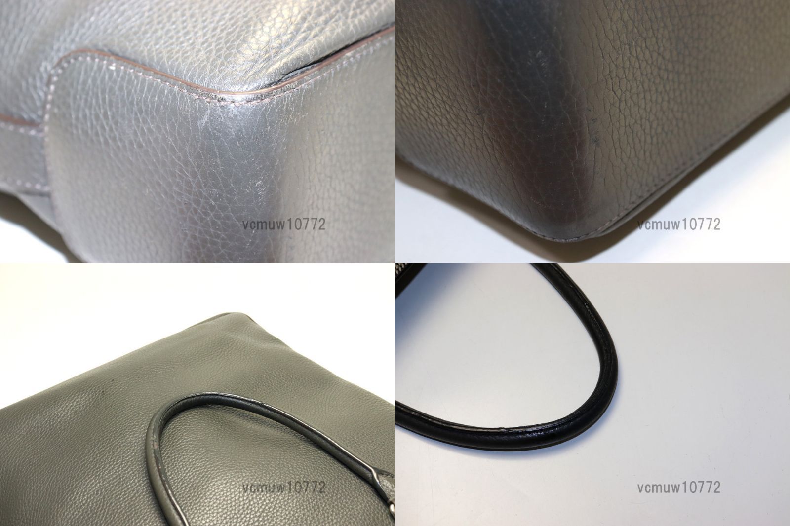 中古ですので新品と比較してすれ、小傷、色むら、若干の型崩れ、使用に問題ないレベルの糸ほつれ、金具にくすみ等ございますが写真の通りコンディション良好です。