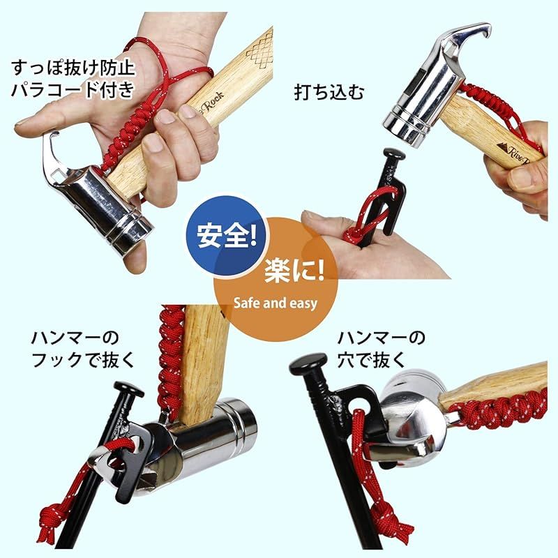 商品名:RiveRock(リバロック) ペグハンマー 収納袋 夜光ロープ 強靭 (ハンマー+バック/レッド)