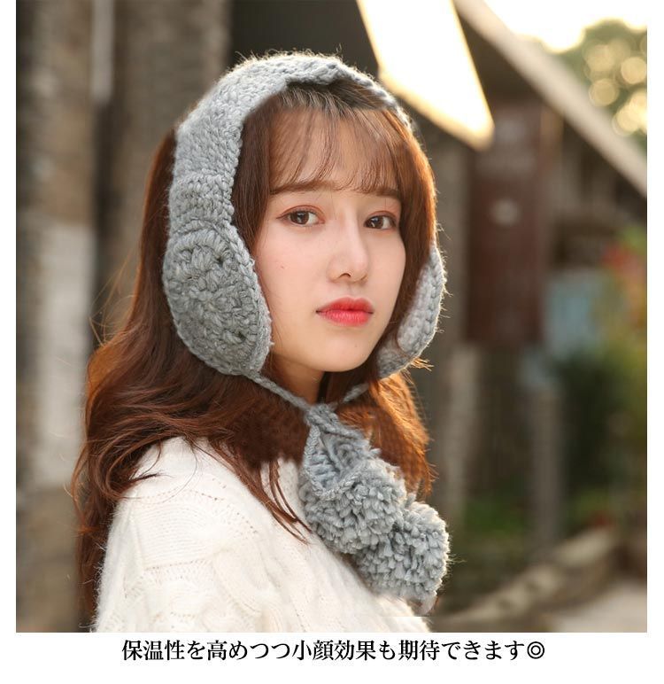 ニット素材のため耳周りがとても暖かく、冬のおでかけに付けるだけでインスタ映えすこと間違いなし◎
