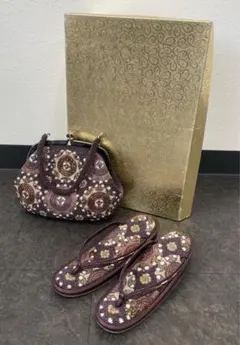 立体感のあるふくれ織生地を使用した草履とバッグのセットです。