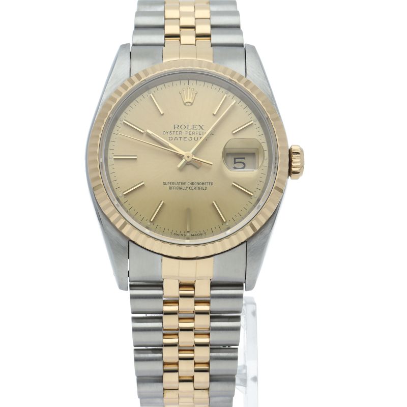 商品説明:ロレックスのドレスウォッチの王道「デイトジャスト」。イエローゴールドとステンレスの組み合わせが上品で高級感を感じさせる1本です。