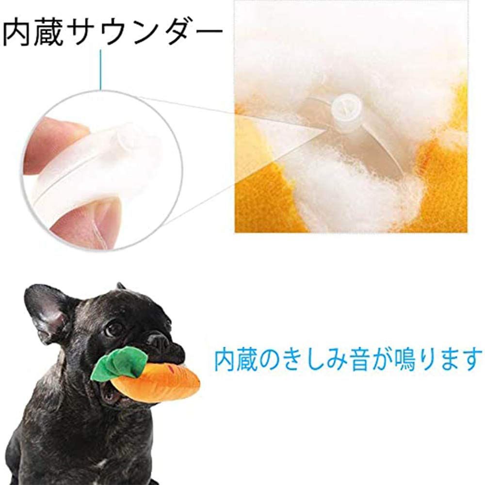 音が鳴る -- 発声装置を搭載して、押したり噛んだり「ピーピー」と音が鳴ります。犬の興味を惹きます。 ※注意:中の笛は小さいですので、ちょうど笛のところ噛まないと、鳴らない可能性があります。ご了承ください。