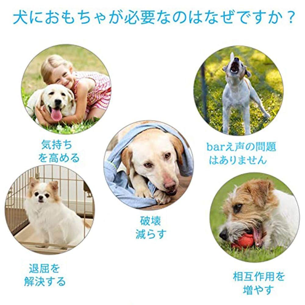 ストレス解消 -- おもちゃを噛んだり、咥えたり、投げたりストレス解消にもなります。犬との一番のコミュニケーションは、一緒に遊ぶことです。留守番中もこれらで遊び寂しさを感じません。