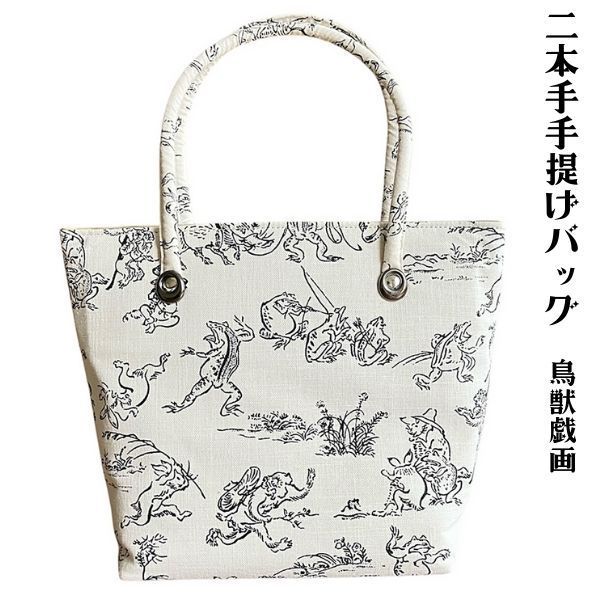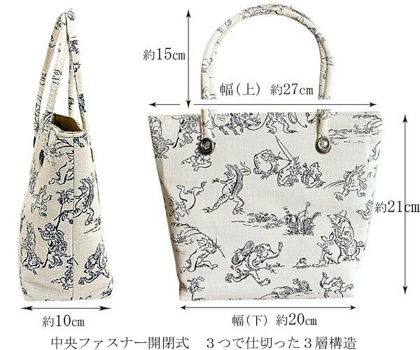 トートバッグ バッグ 鳥獣戯画 白色 系 和装バッグ 日本製 洋装