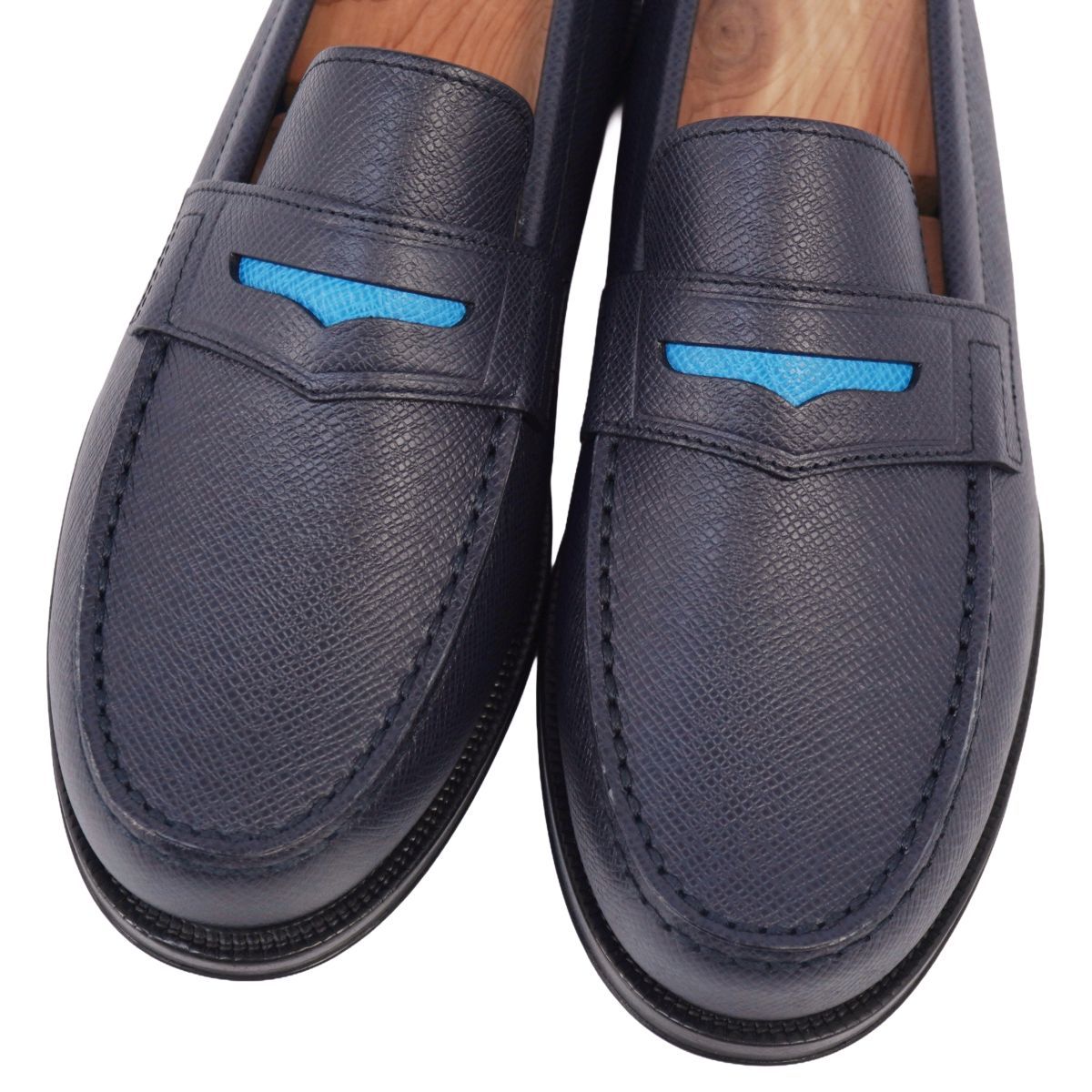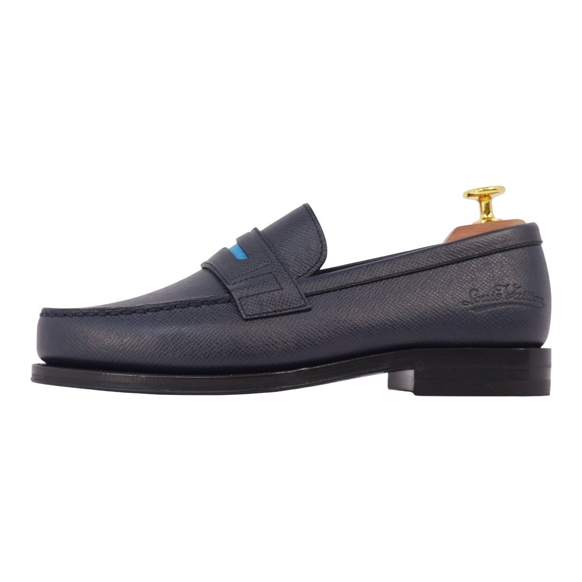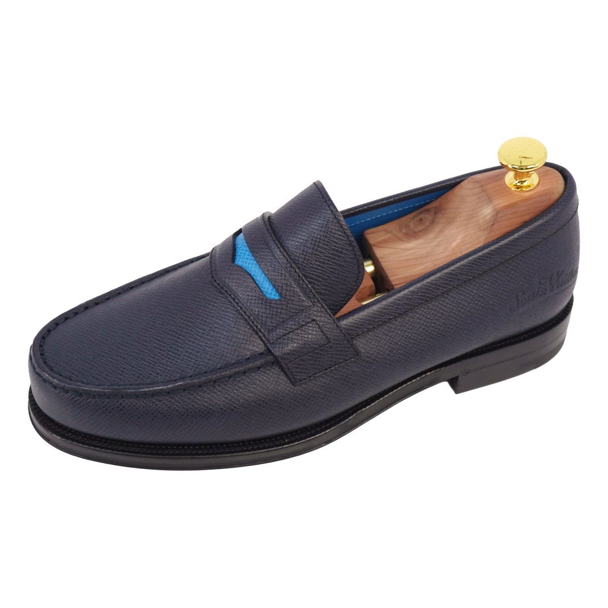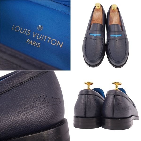 未使用 ルイヴィトン LOUIS VUITTON ローファー モカシン ソルボンヌライン レザー 靴 メンズ 5L(24.5cm相当) ネイビー