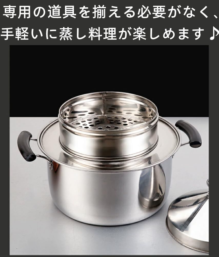 【中華セイロ用受け台 - 用途】家にあるフライパンや鍋にセットするだけで、中華まん、シュウマイ、小籠包、茶碗蒸し、温野菜などの蒸し料理を、気軽に楽しむことができます。