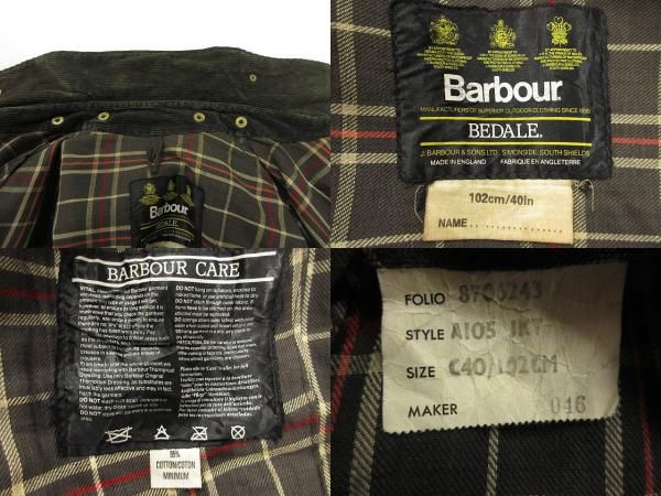【商品名】バブアー Barbour 80s 4ポケット ビデイル BEDALE オイルドジャケット C40 102cm 英国製 3ワラント ヴィンテージ ワックスコットン