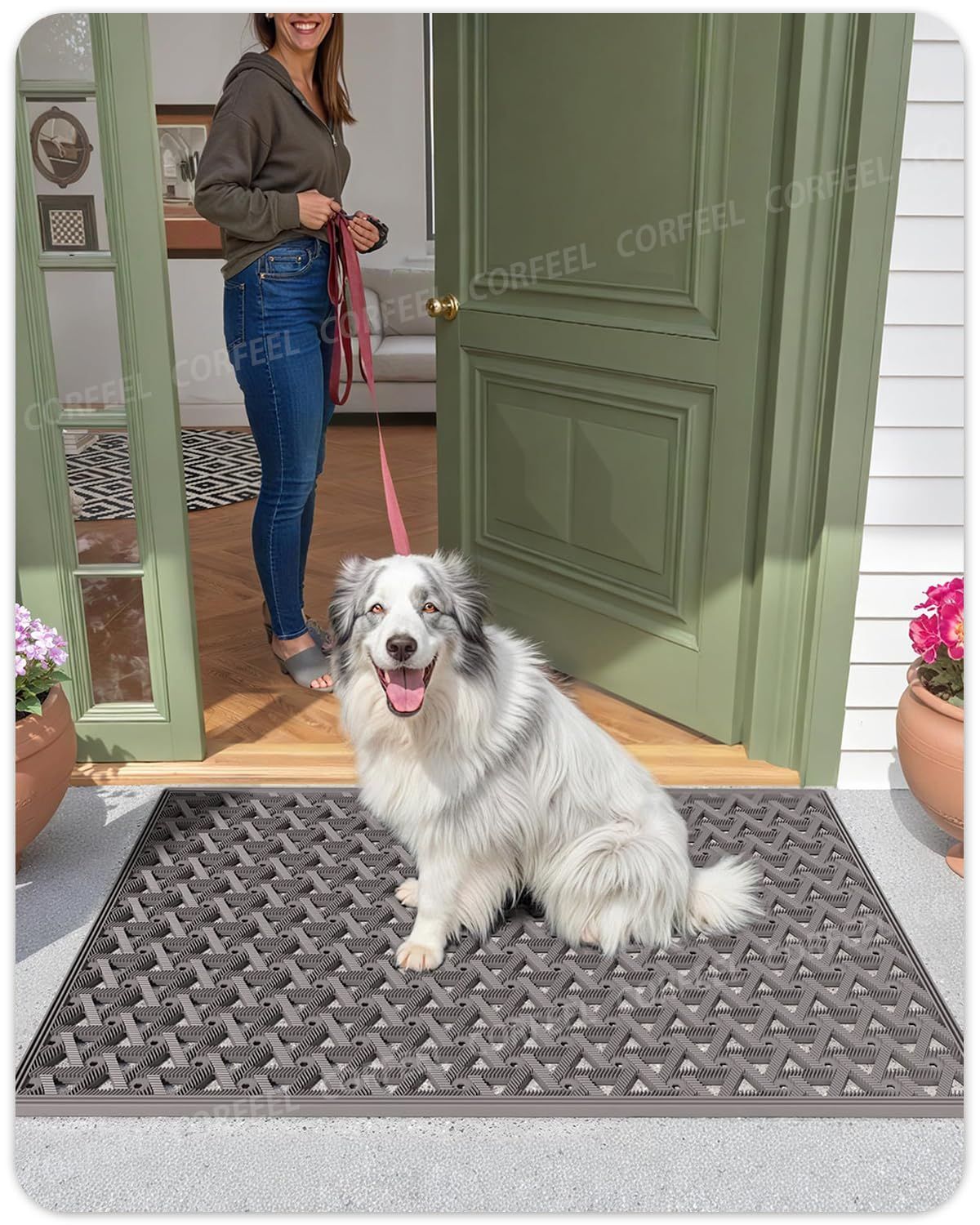 CORFEEL 玄関マット 屋外 泥落とし ドアマット 業務用 家庭用 (48.5x75cm グレー)