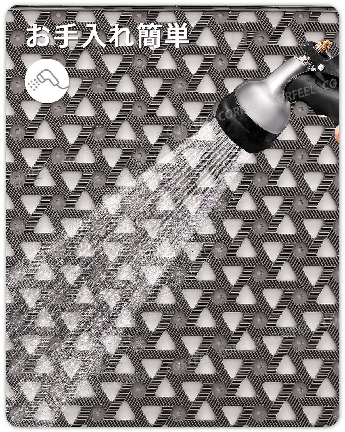【掃除便利】普通のマットと違い穴が開いているので汚れがたまらず、また水も染み込まずお手入れしやすいです。
