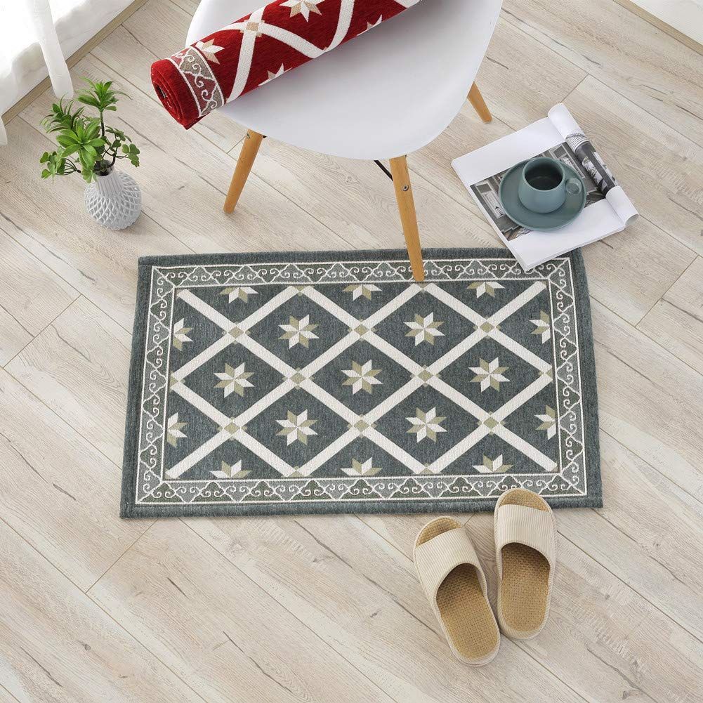 玄関マット 屋内 ドアマット おしゃれ - 50 * 80 cm 泥落としマット 洗える 吸水 夏用 - ゴブラン織り チェック柄 無地 滑り止め 床暖房対応 オールシーズン適用 低反発 業務用 家庭用 オフィス用 グリーン