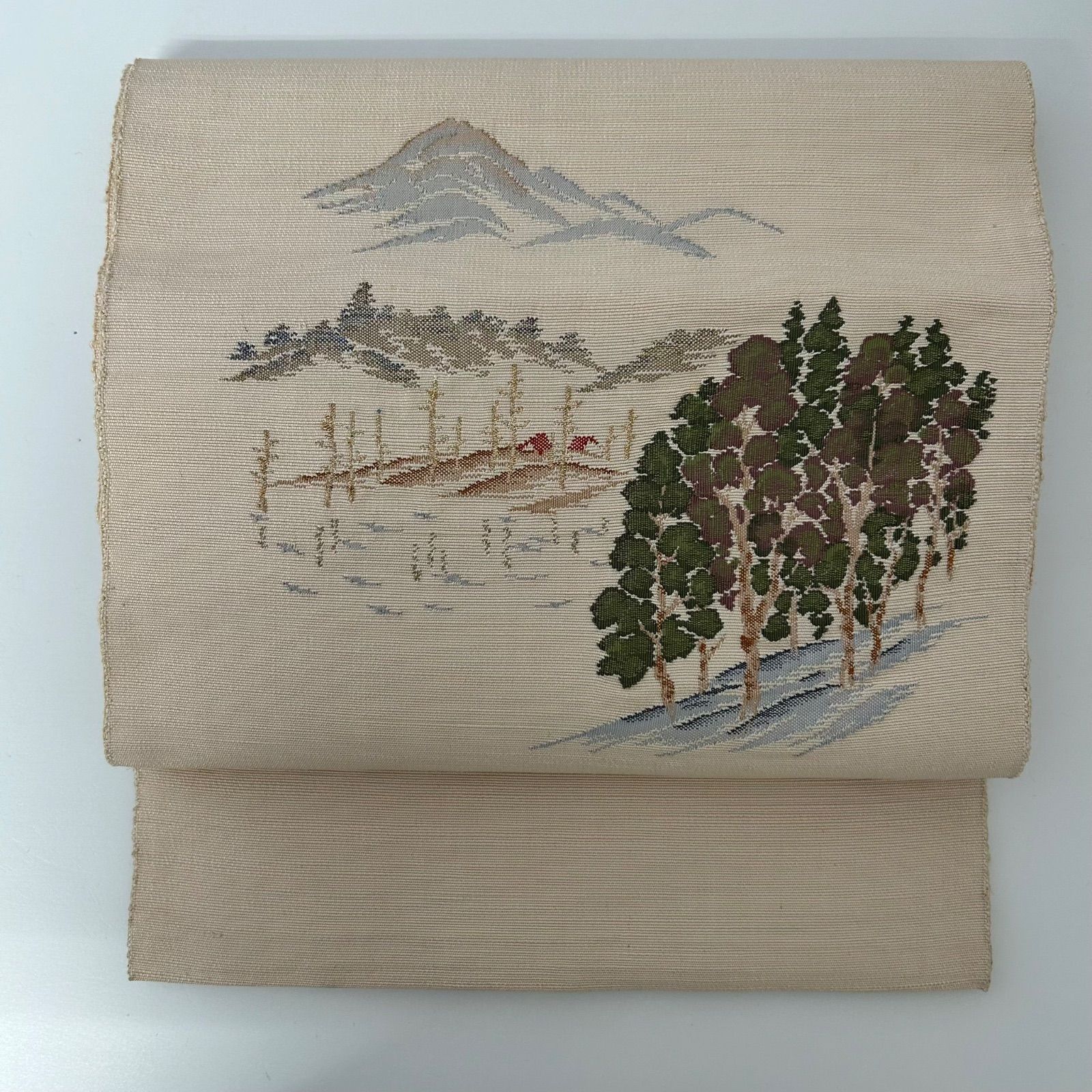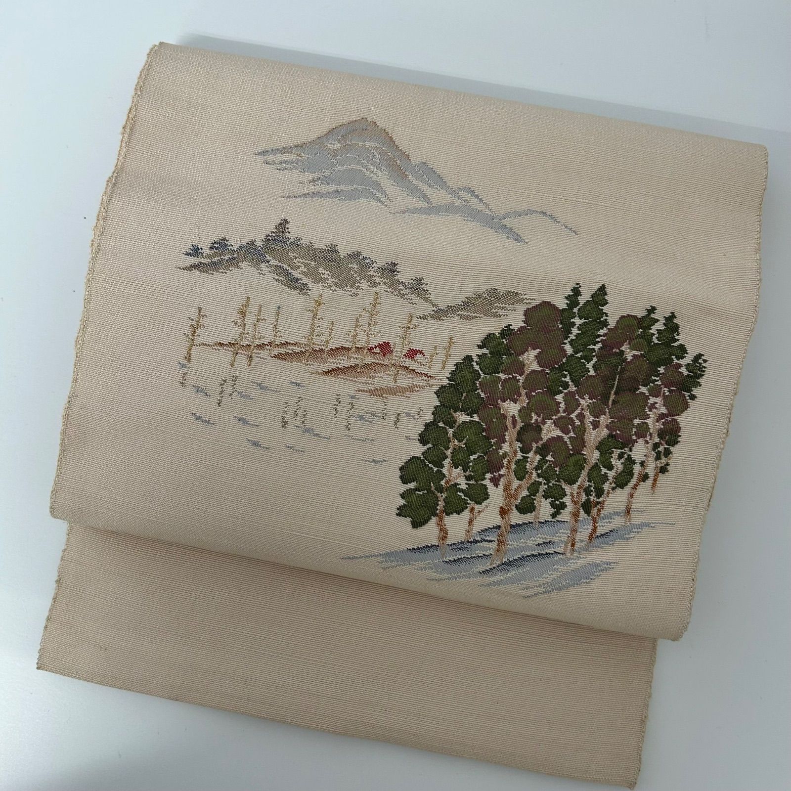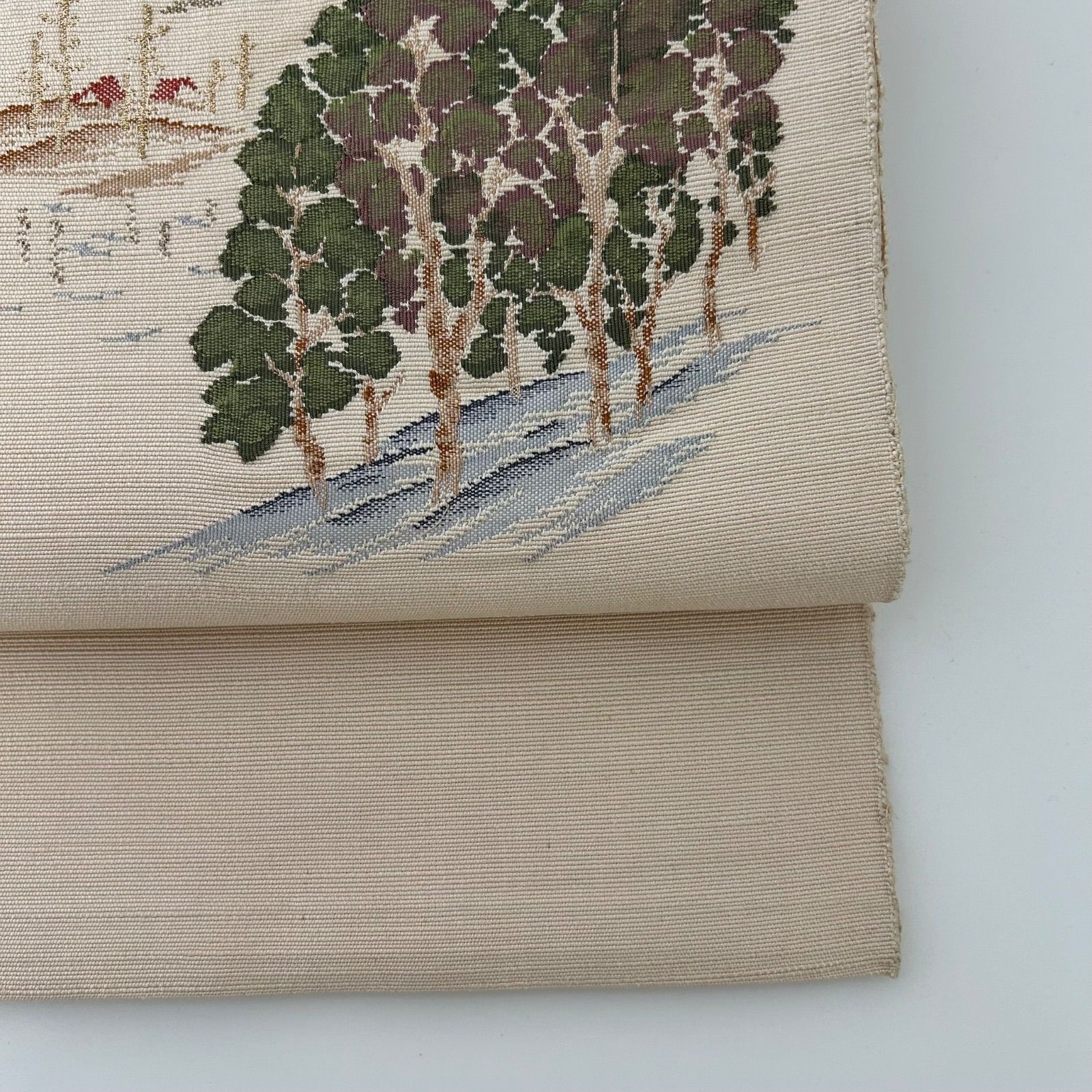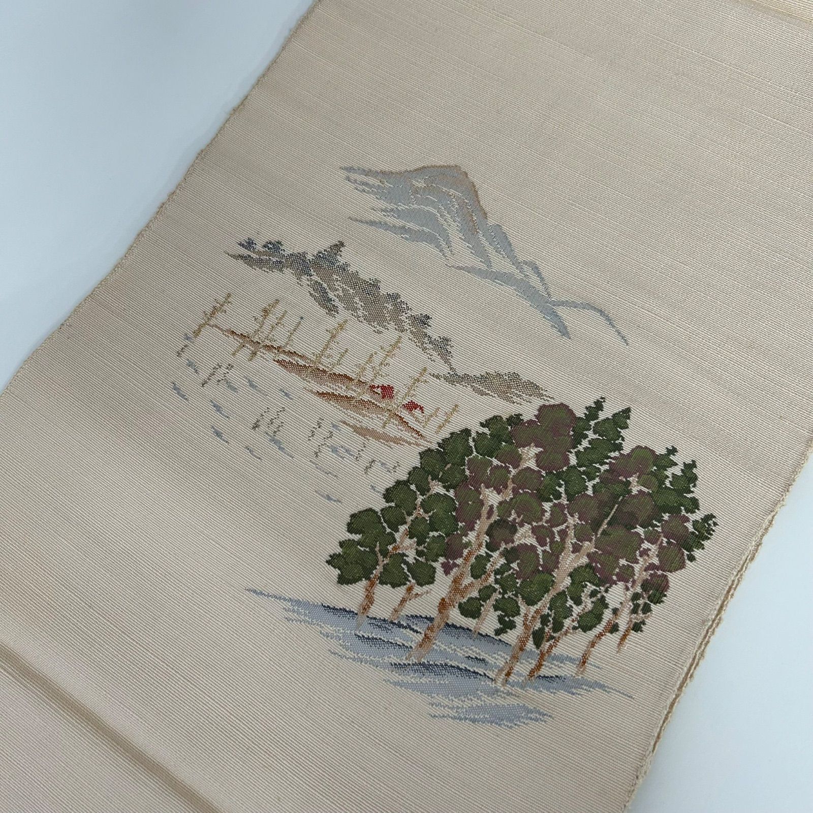 名古屋帯 正絹 紬 織柄 風景 八寸 MA-2723