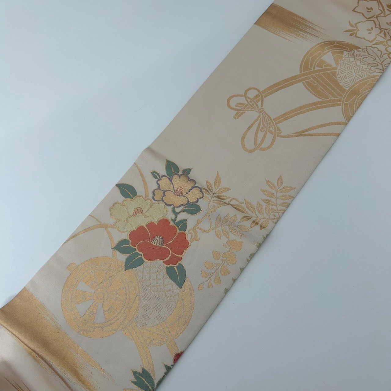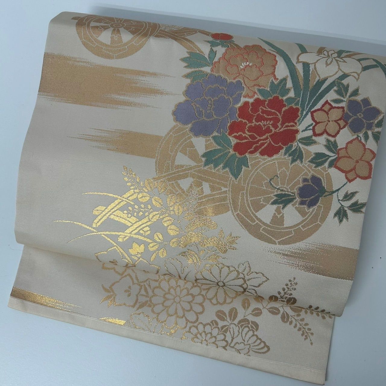 名古屋帯 正絹 花車 上品な加工 九寸 MA-2712