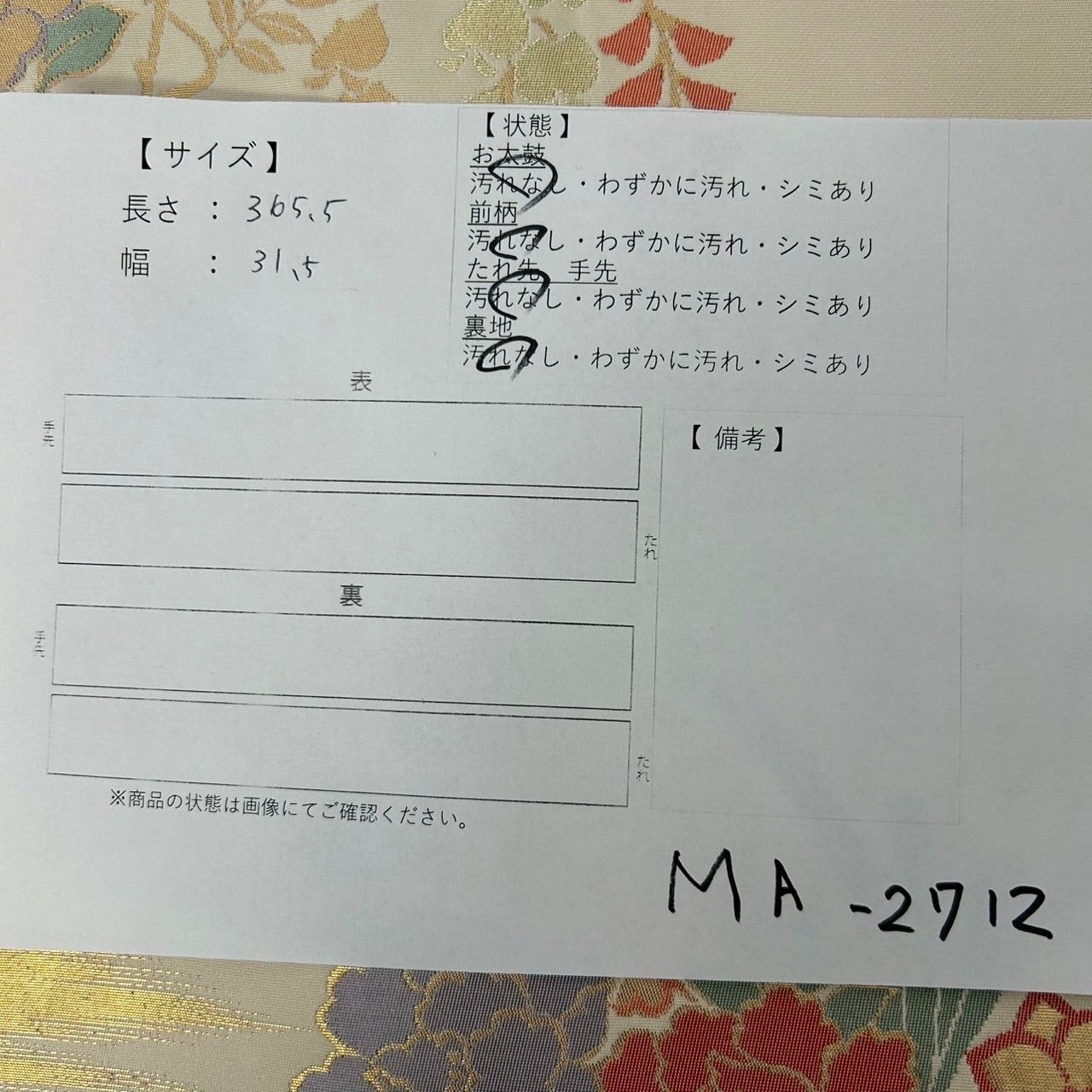 検品表を画像に入れております、ご確認をお願い致します。