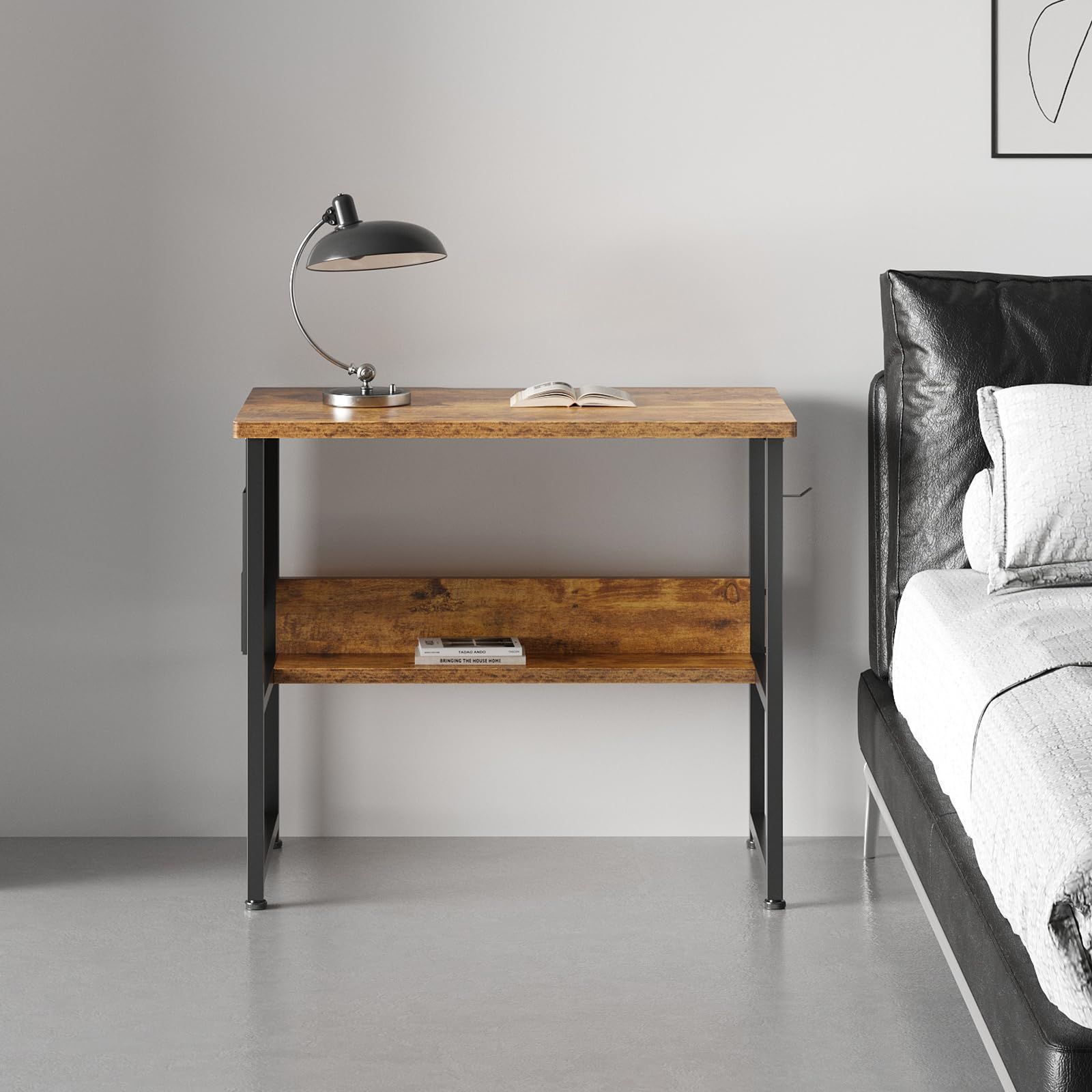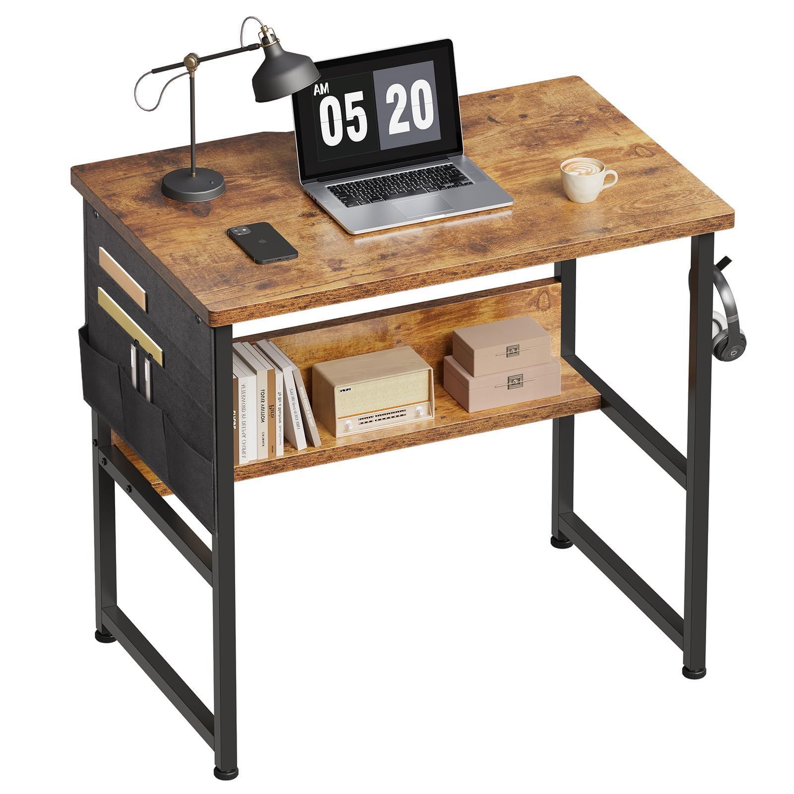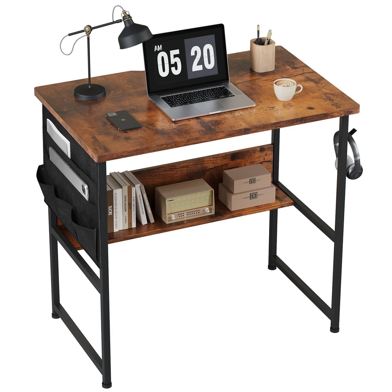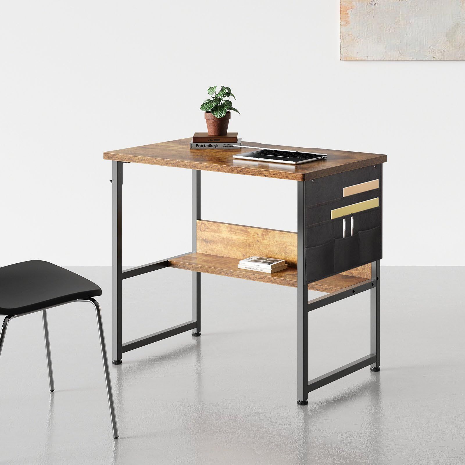 机 pcデスク 勉強机 幅80cm 作業机 収納袋付きパソコンデスク 小さい ワークデスク モニターアーム取付対応 組立簡単 ビンテージ